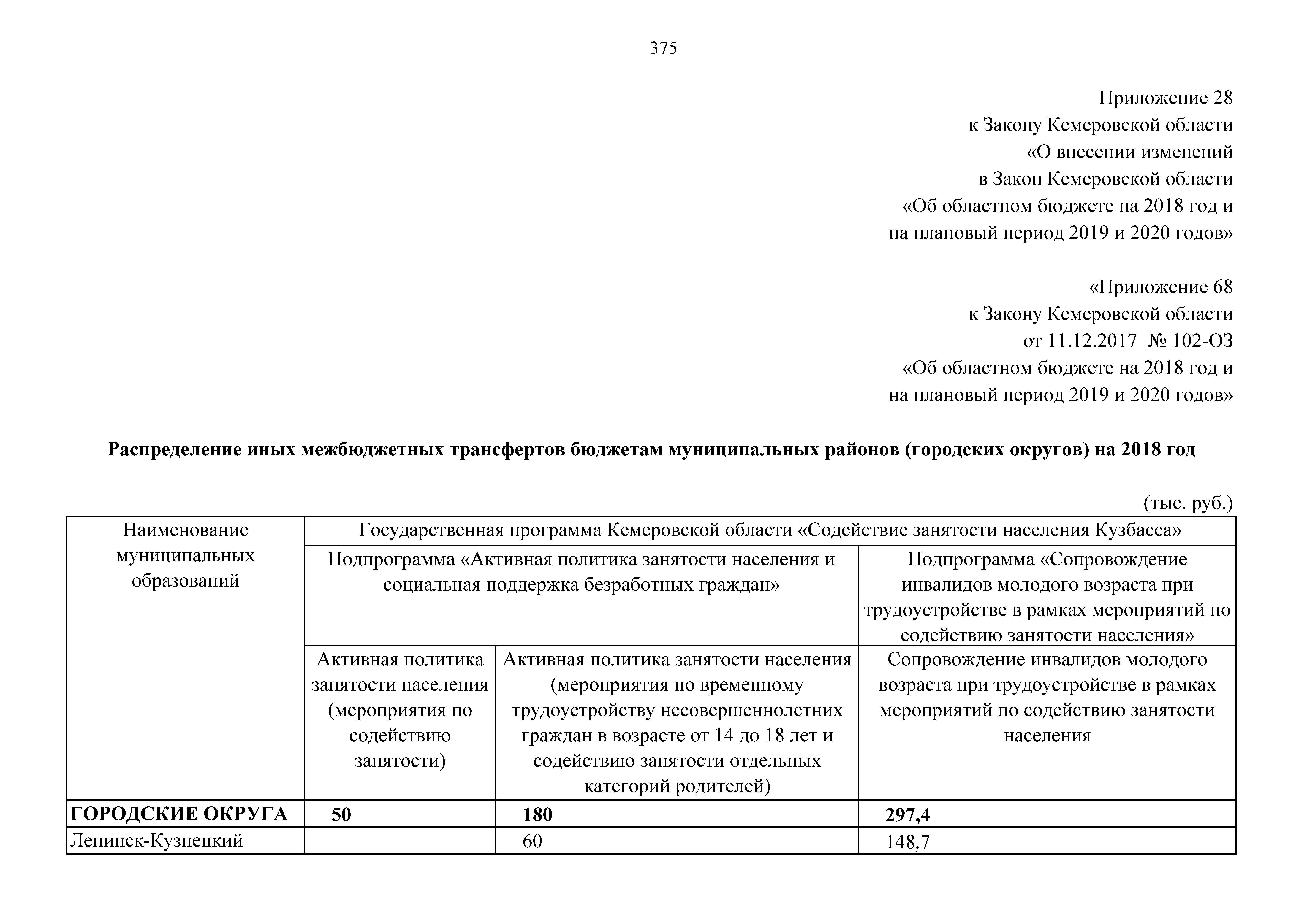 Закон Кемеровской области от 14.06.2018 № 41-ОЗ "О внесении изменений в Закон Кемеровской области "Об областном бюджете на 2018 год и на плановый период 2019 и 2020 годов"