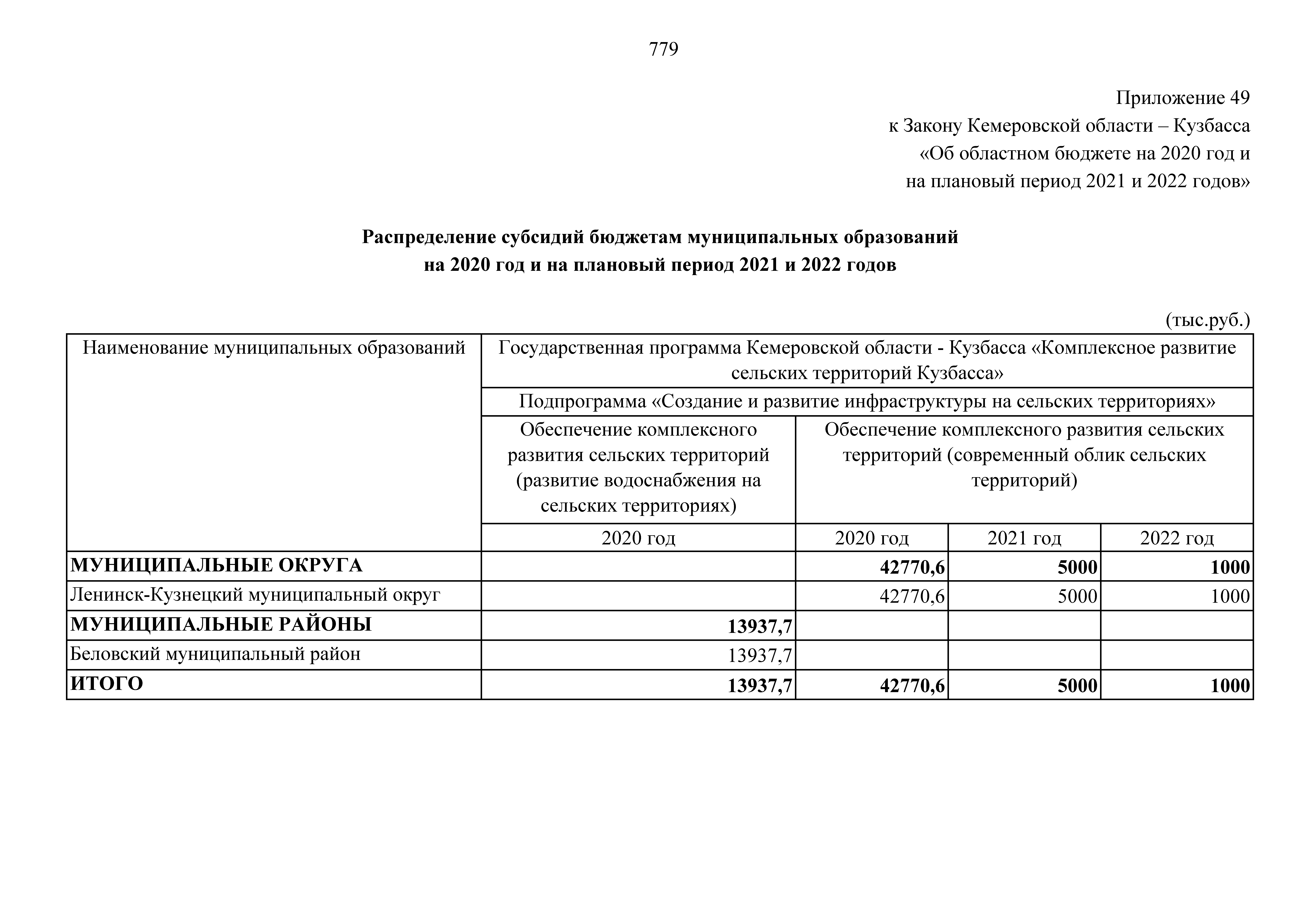 "Об областном бюджете на 2020 год и на плановый период 2021 и 2022 годов"