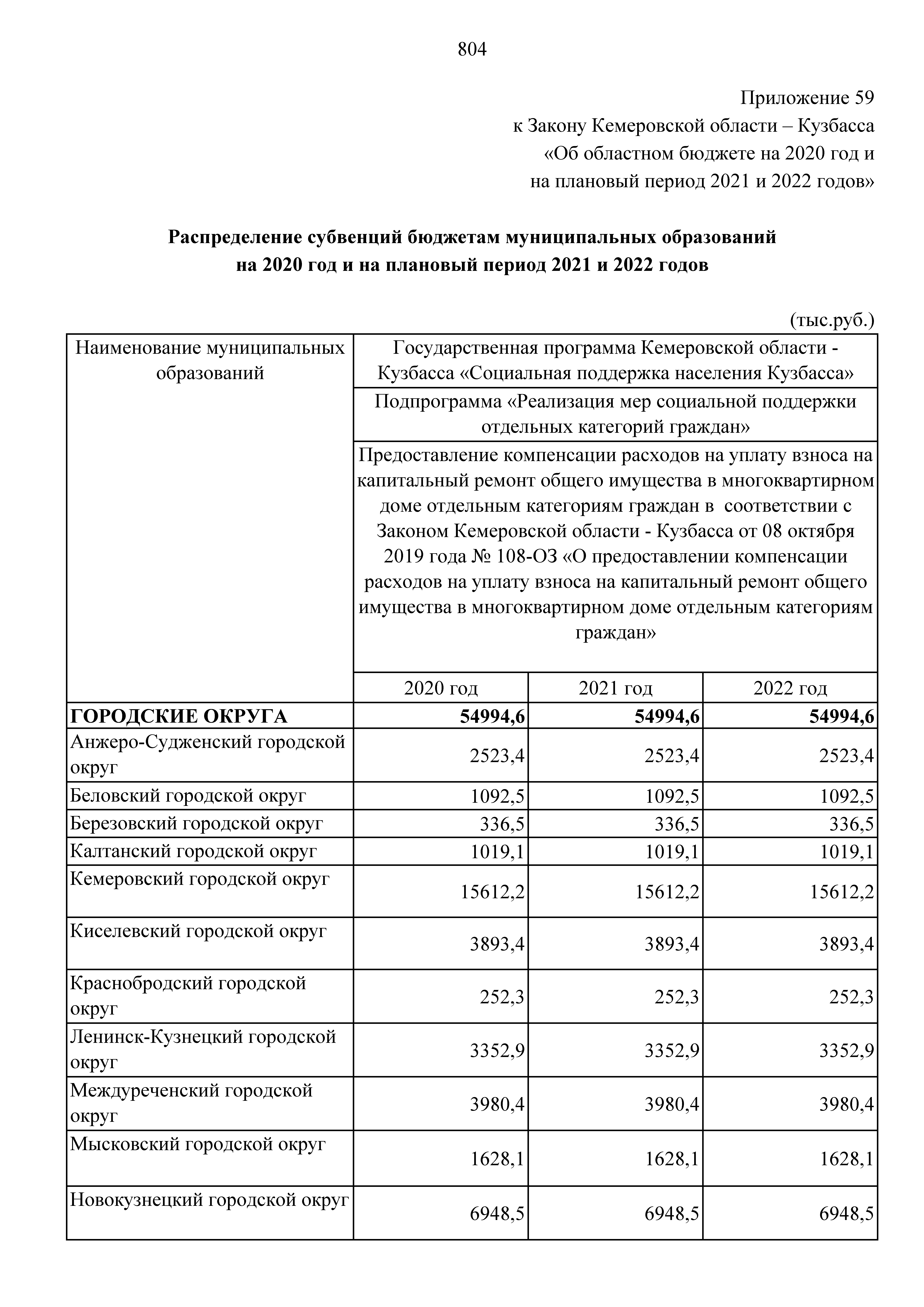 "Об областном бюджете на 2020 год и на плановый период 2021 и 2022 годов"