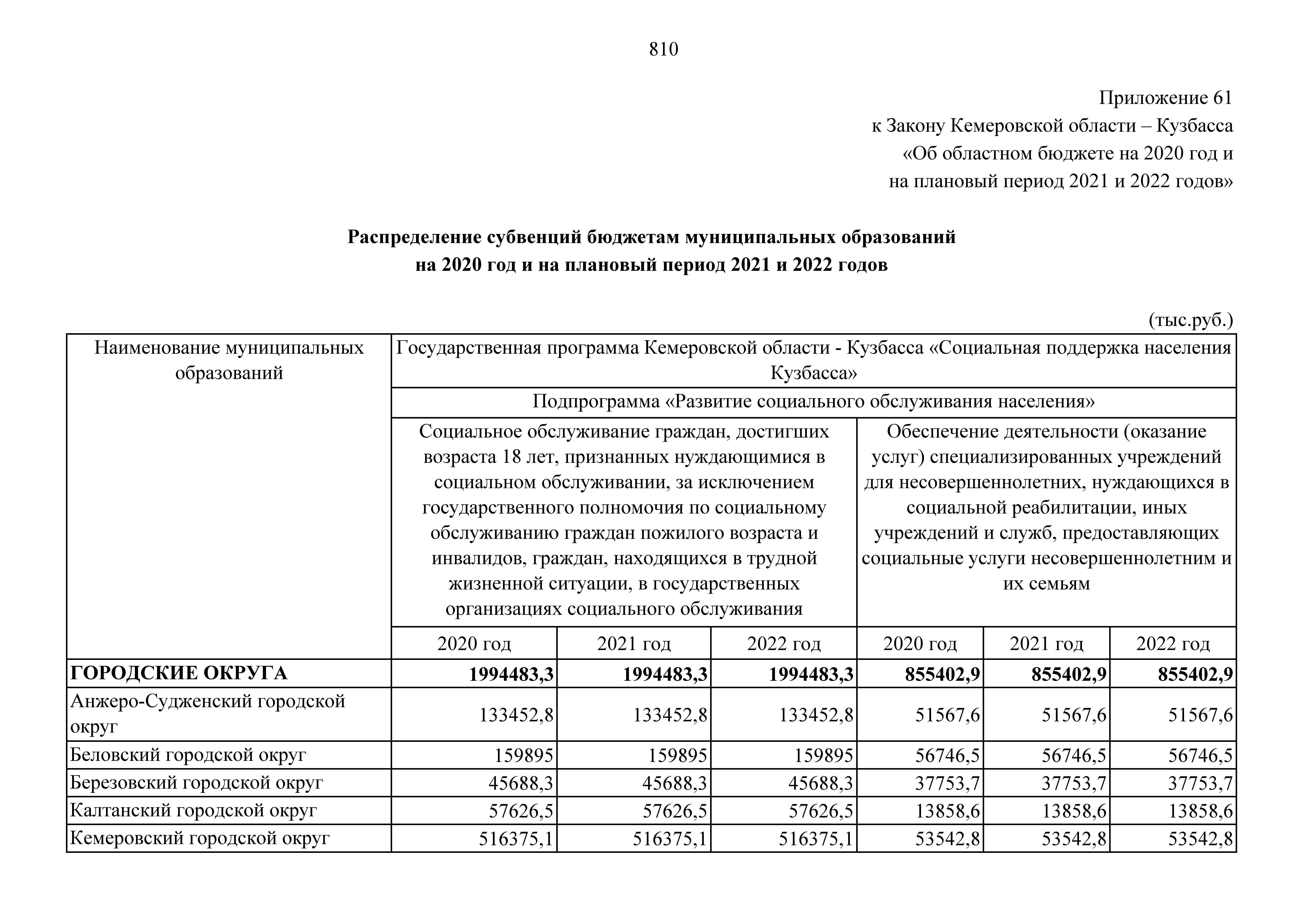 "Об областном бюджете на 2020 год и на плановый период 2021 и 2022 годов"