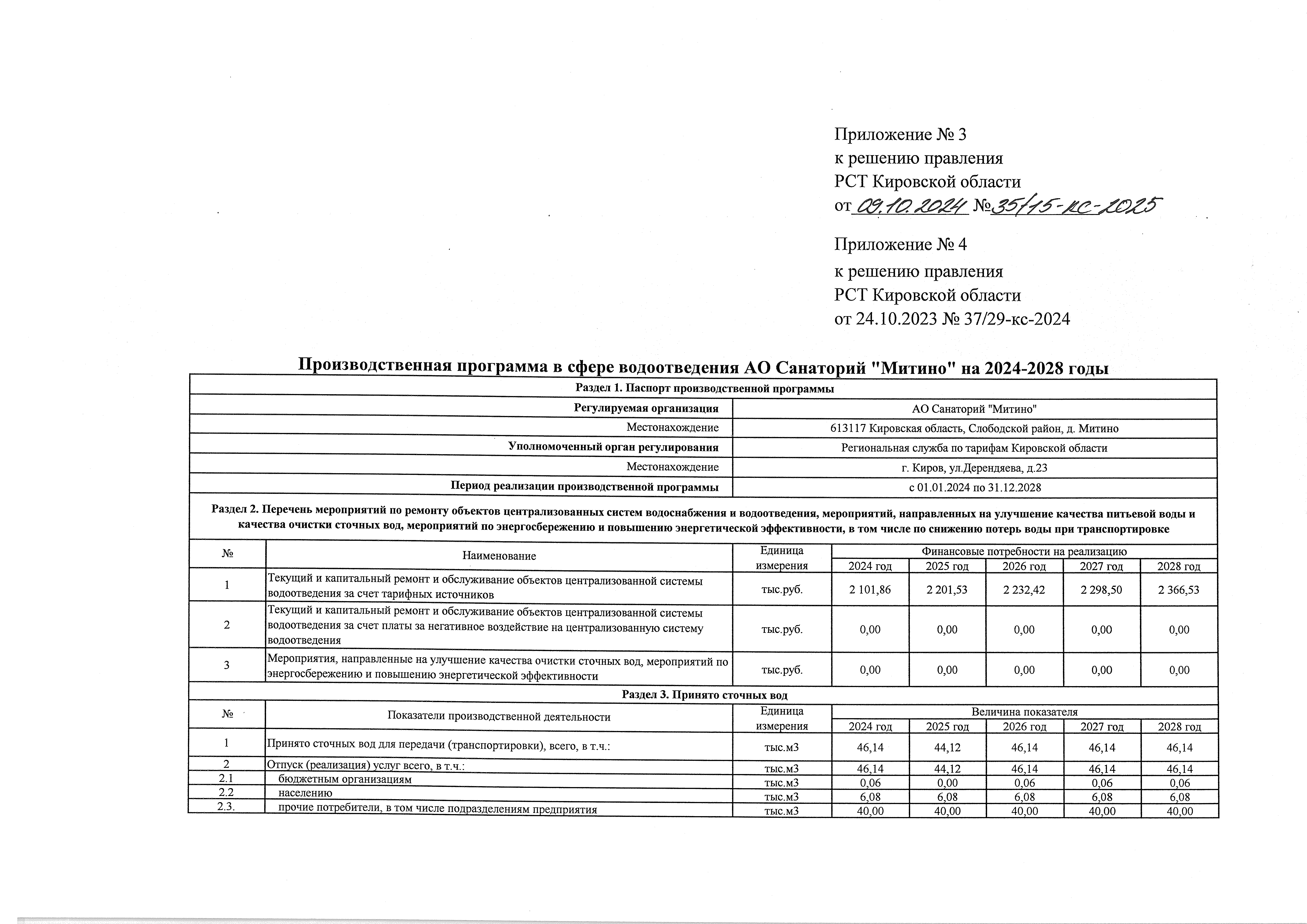 Решение правления региональной службы по тарифам Кировской области от 09.10.2024 № 35/15-кс-2025