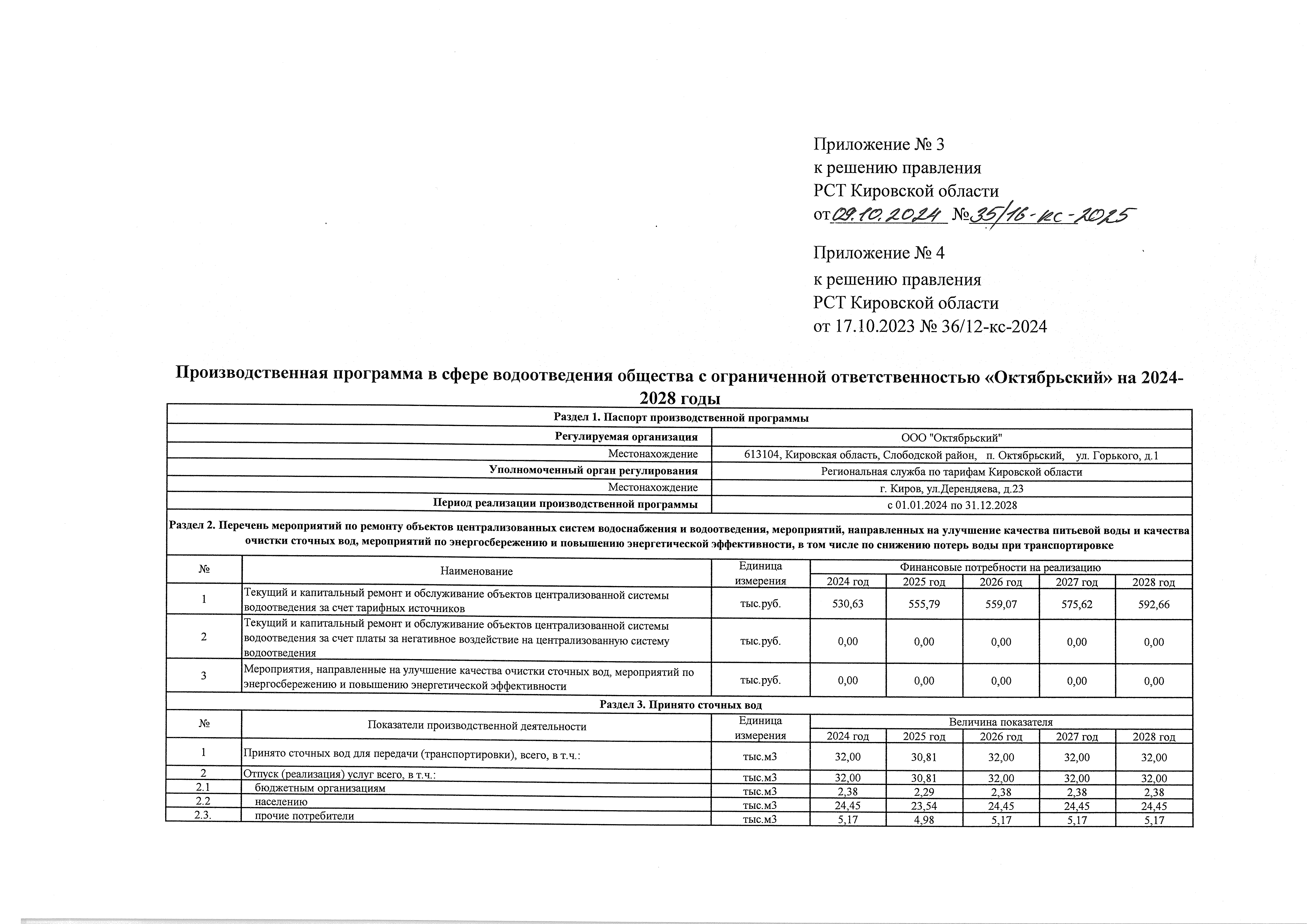 Решение правления региональной службы по тарифам Кировской области от 09.10.2024 № 35/16-кс-2025