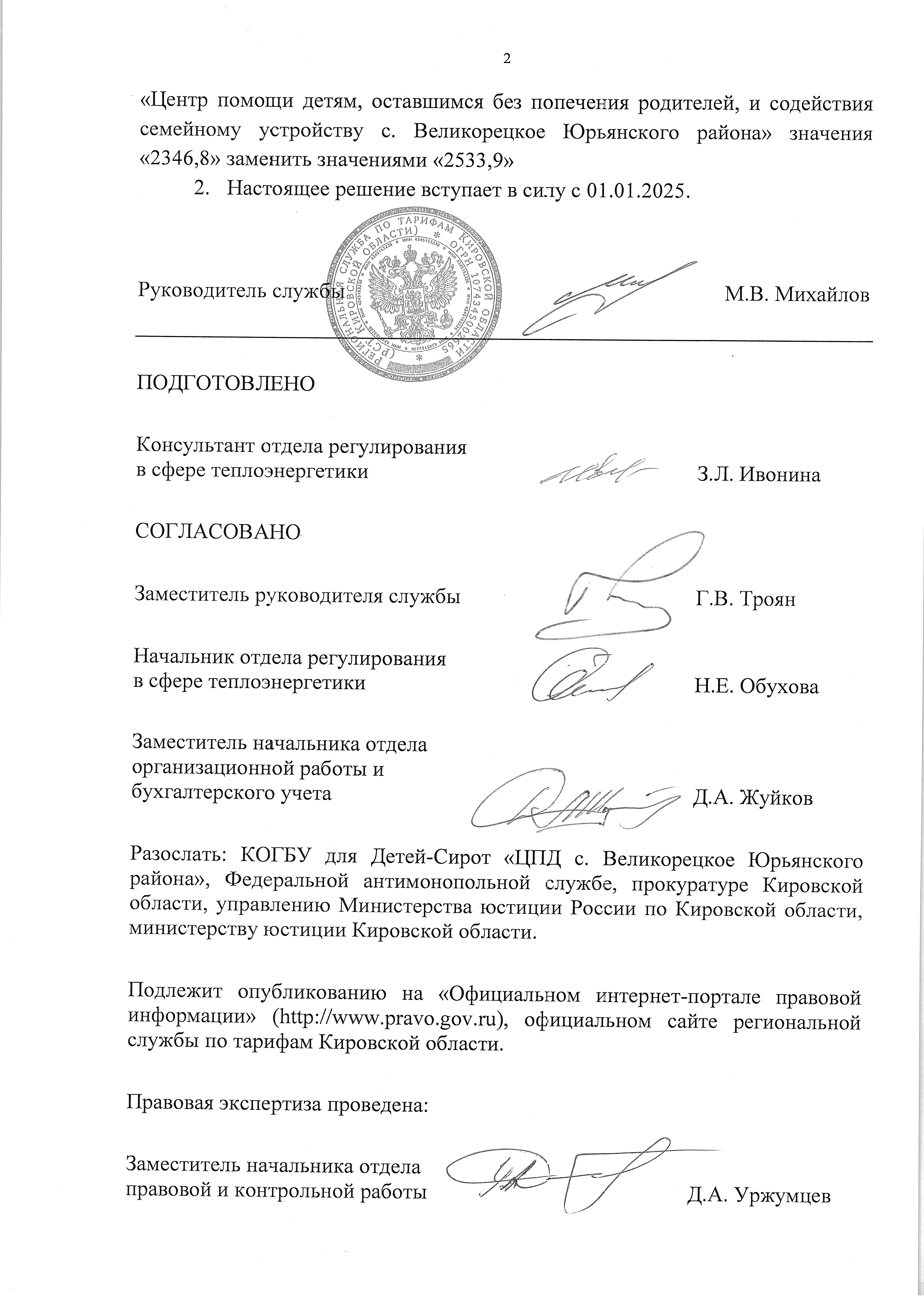Решение правления региональной службы по тарифам Кировской области от 09.10.2024 № 35/8-тэ-2025