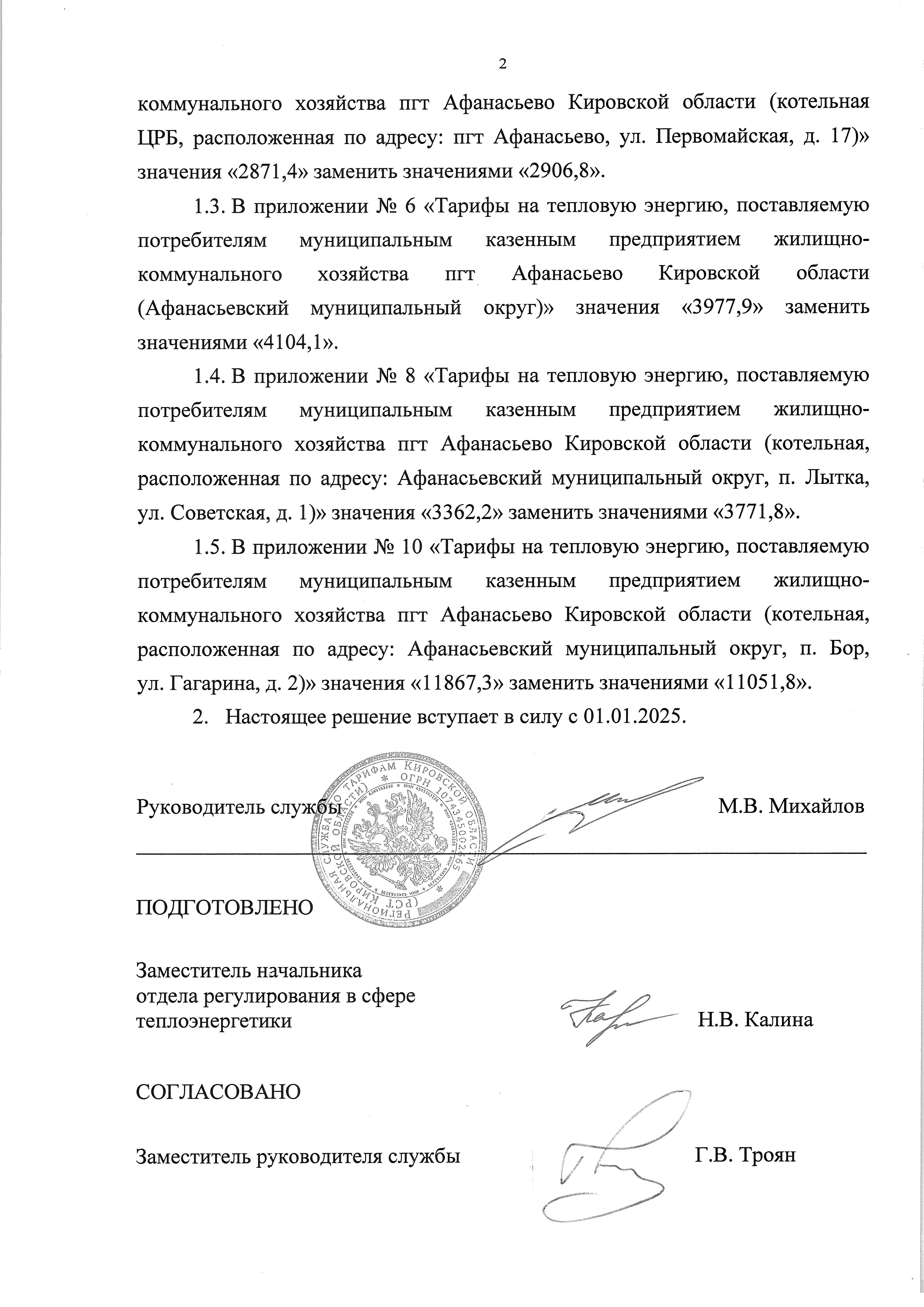 Решение правления региональной службы по тарифам Кировской области от 09.10.2024 № 35/7-тэ-2025