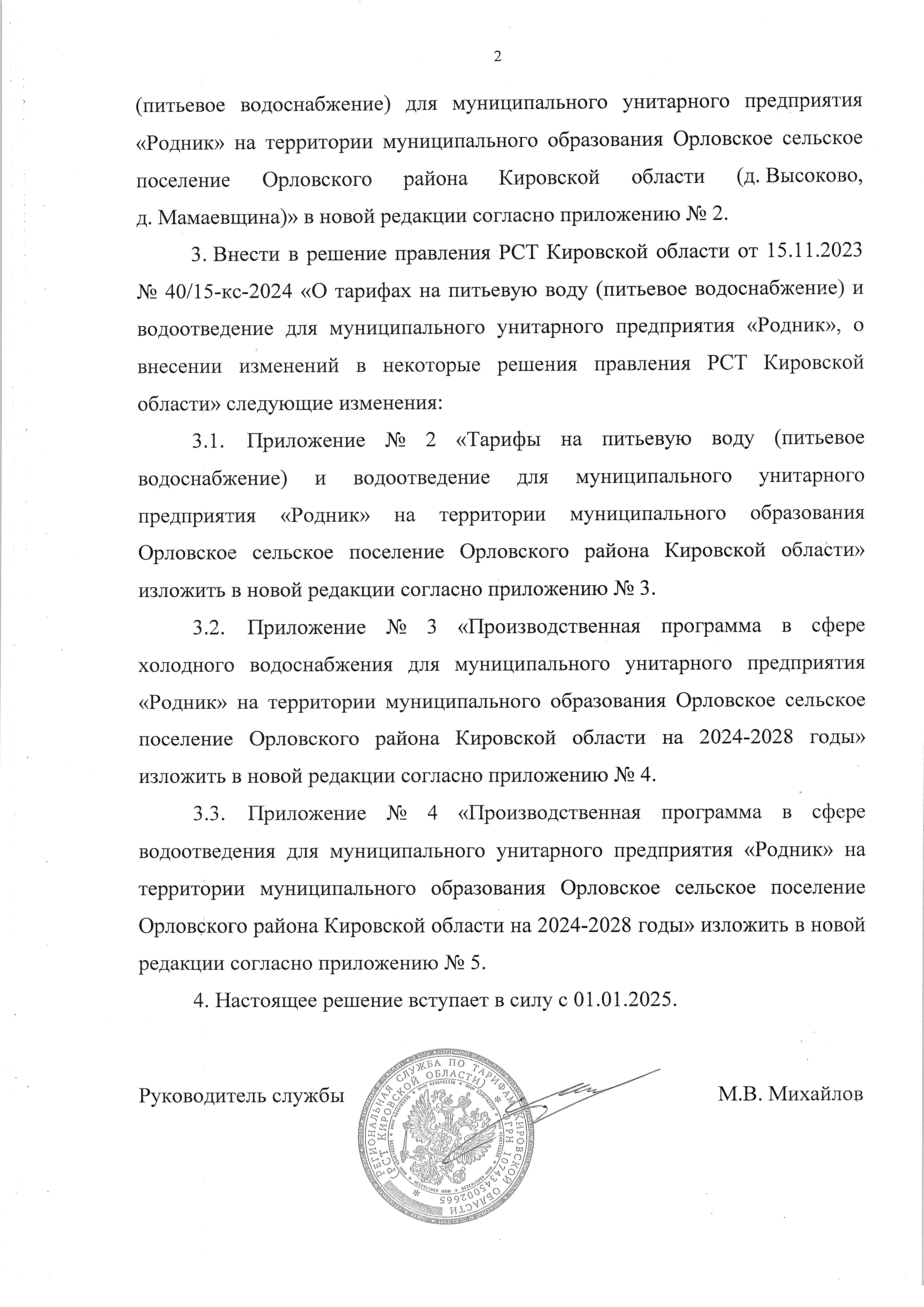 Решение правления региональной службы по тарифам Кировской области от 09.10.2024 № 35/33-кс-2025