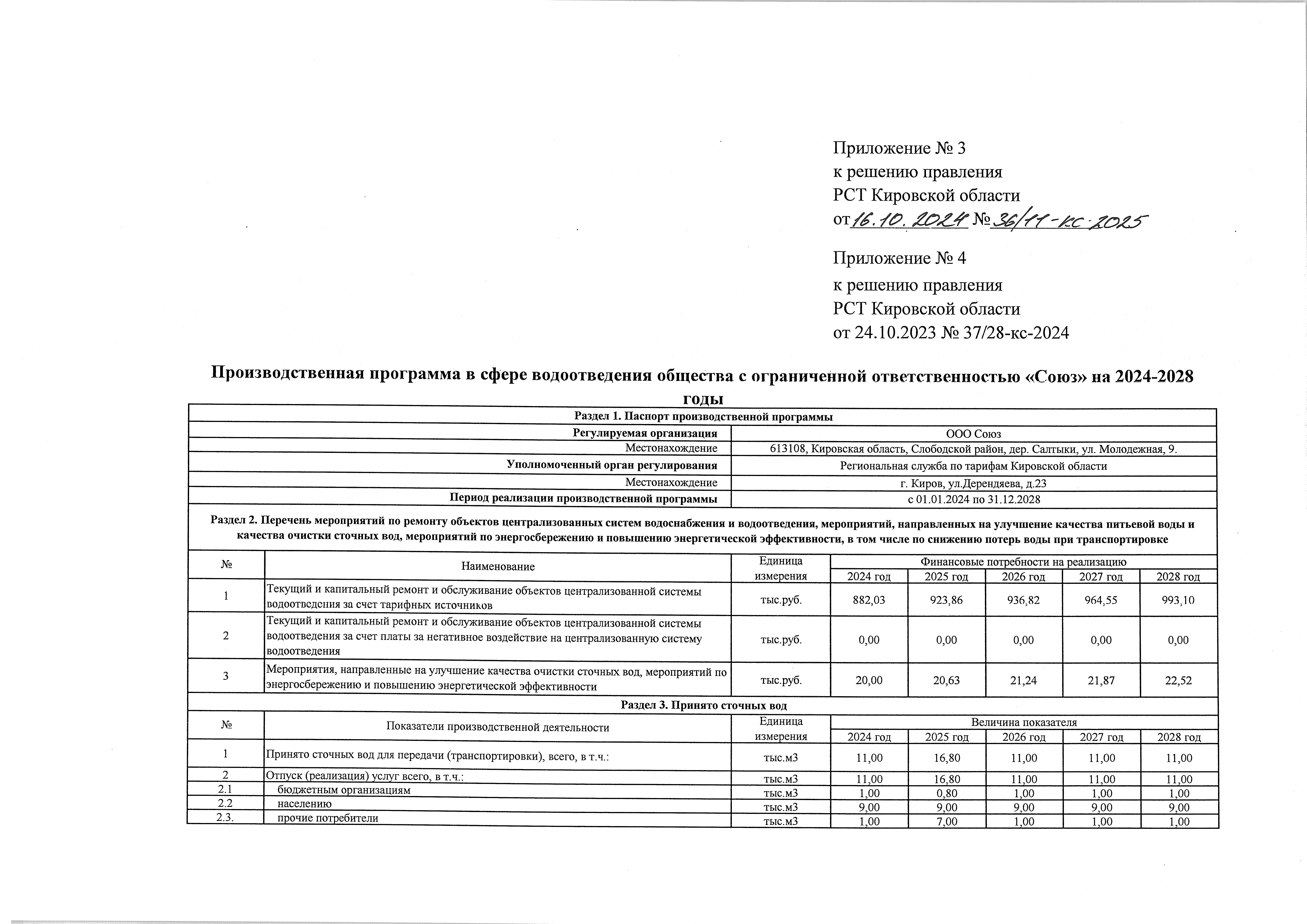 Решение правления региональной службы по тарифам Кировской области от 16.10.2024 № 36/11-кс-2025
