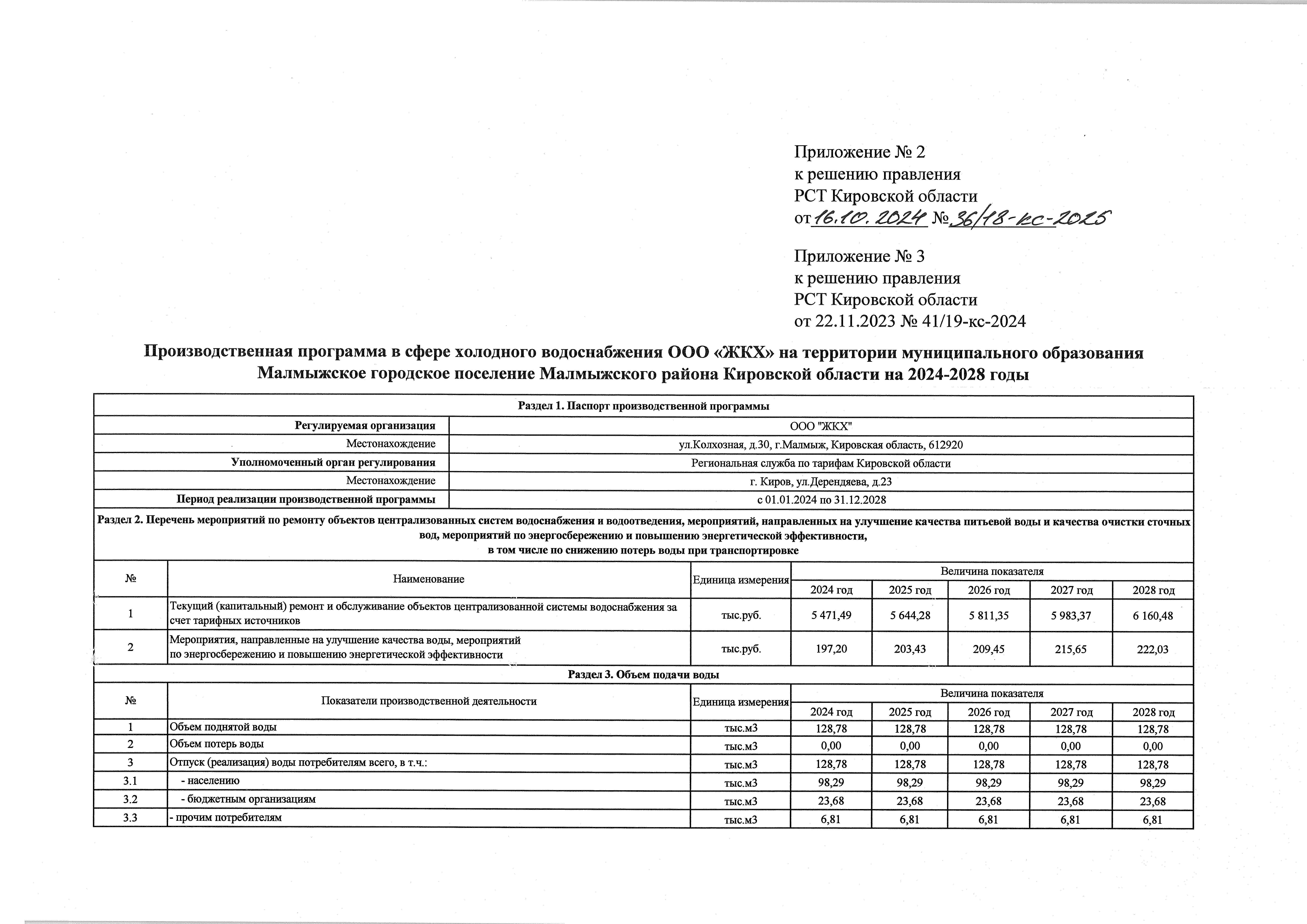 Решение правления региональной службы по тарифам Кировской области от 16.10.2024 № 36/18-кс-2025