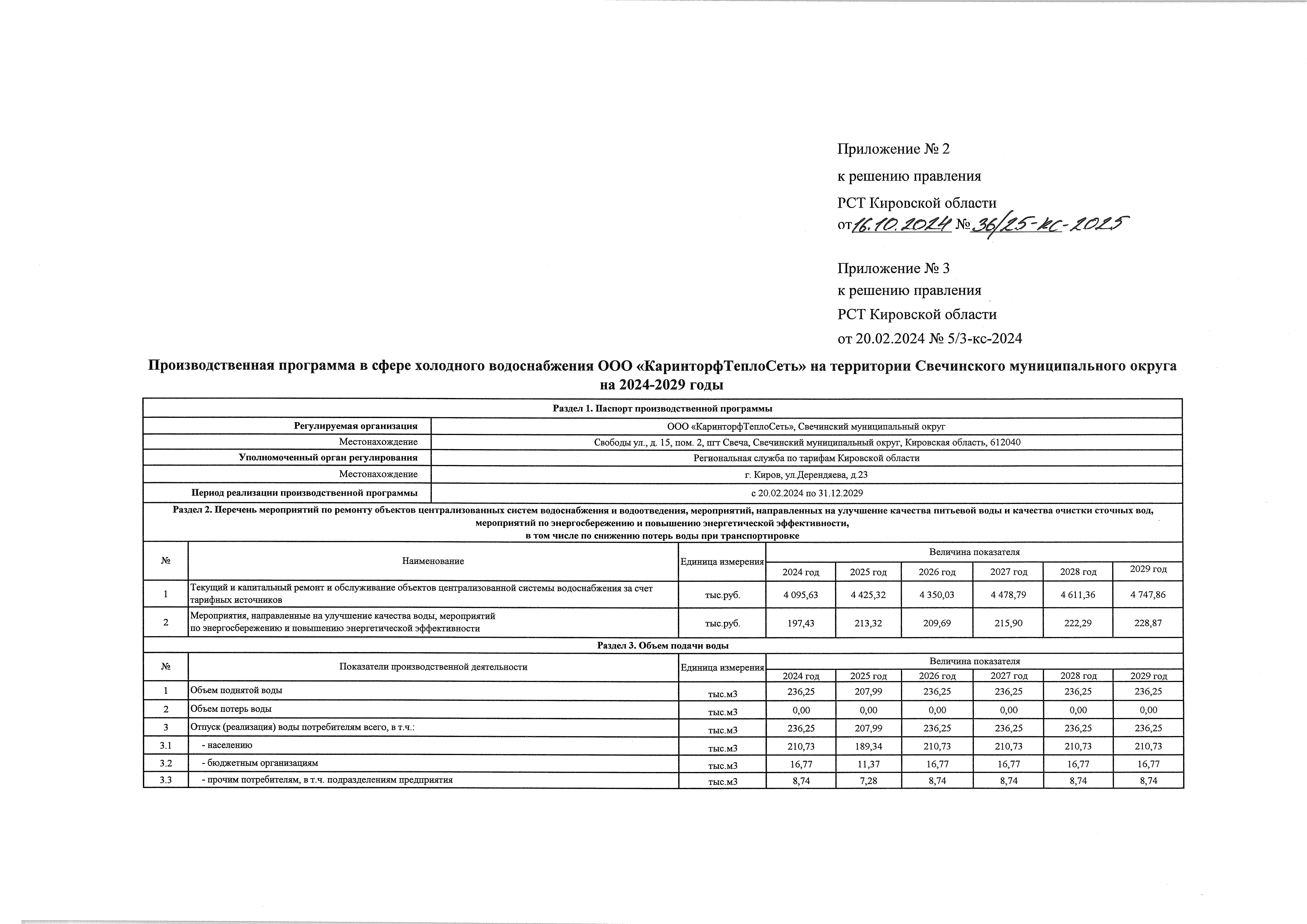 Решение правления региональной службы по тарифам Кировской области от 16.10.2024 № 36/25-кс-2025
