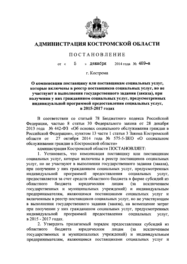 Постановление администрации Костромской области от 05.12.2014 № 489-а