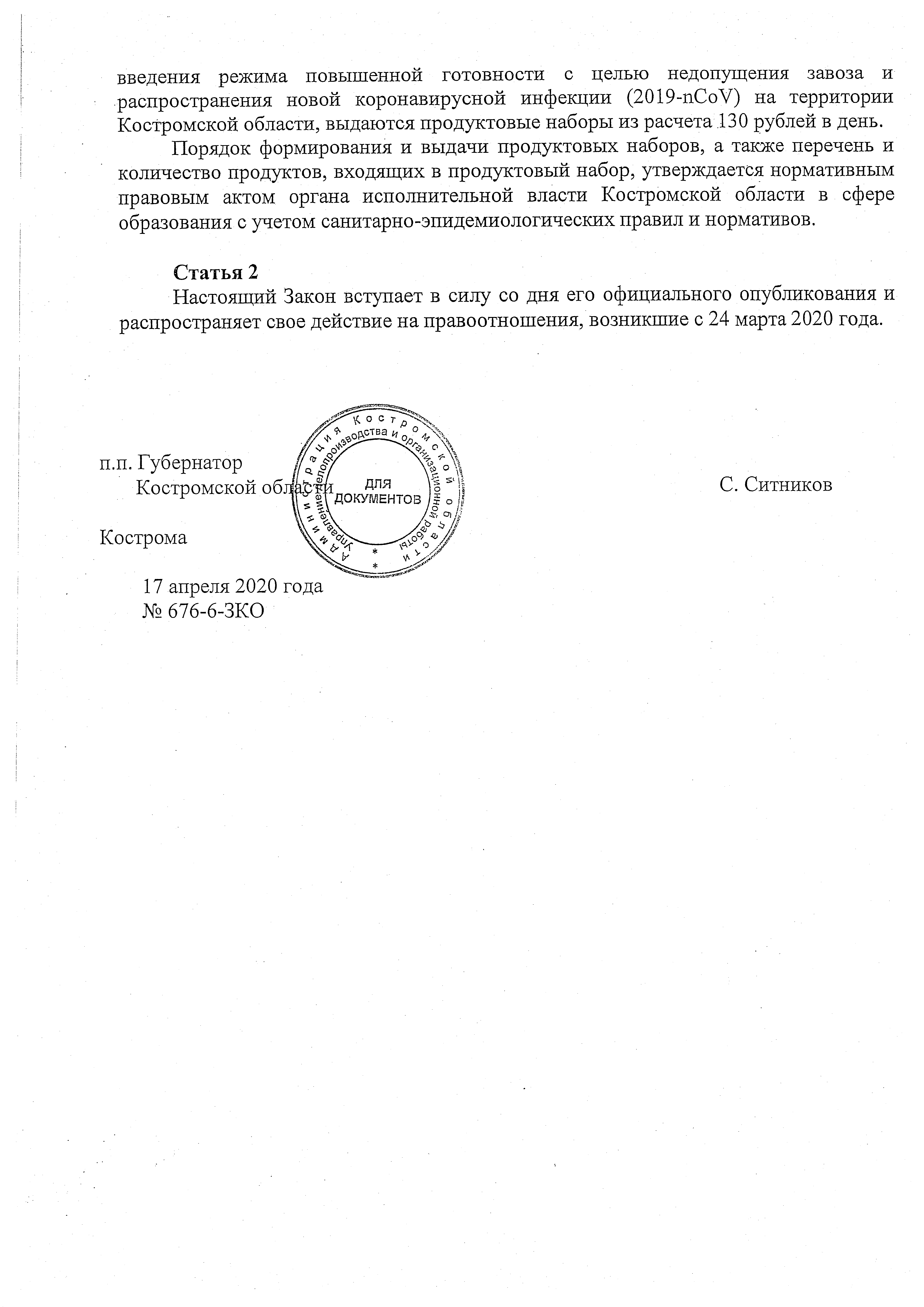 Закон Костромской области от 17.04.2020 № 676-6-ЗКО
