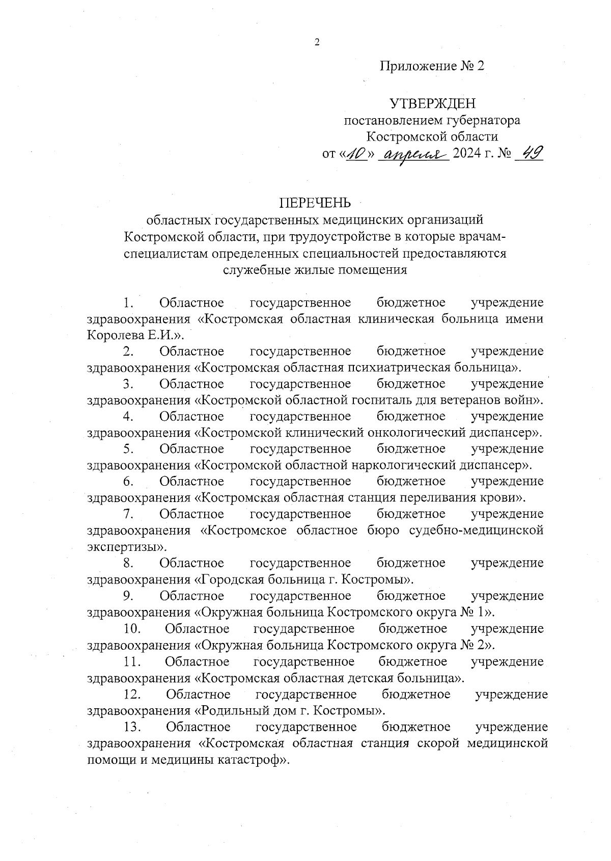 Постановление губернатора Костромской области от 10.04.2024 № 49