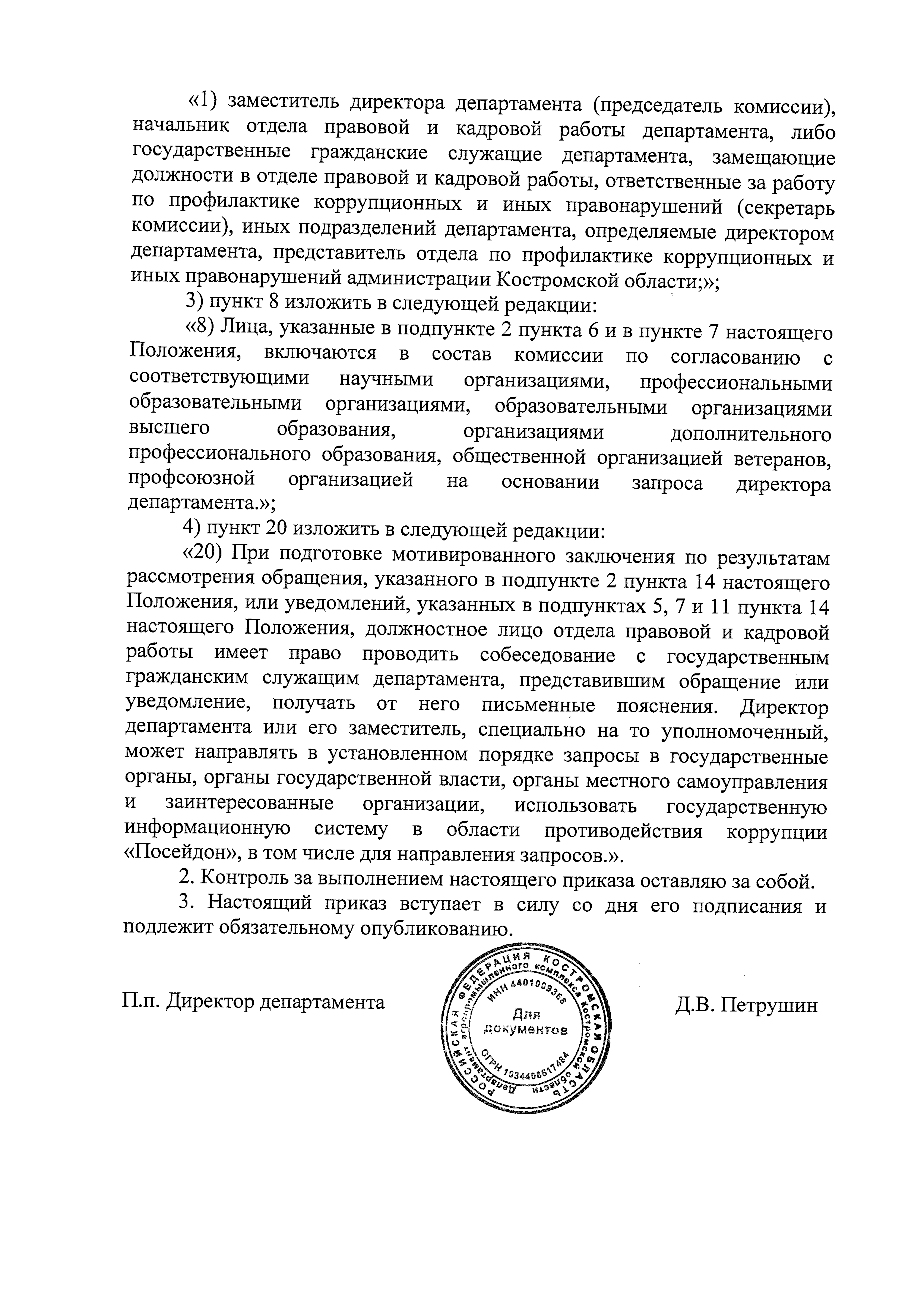 Приказ Департамента агропромышленного комплекса Костромской области от 20.08.2024 № 187