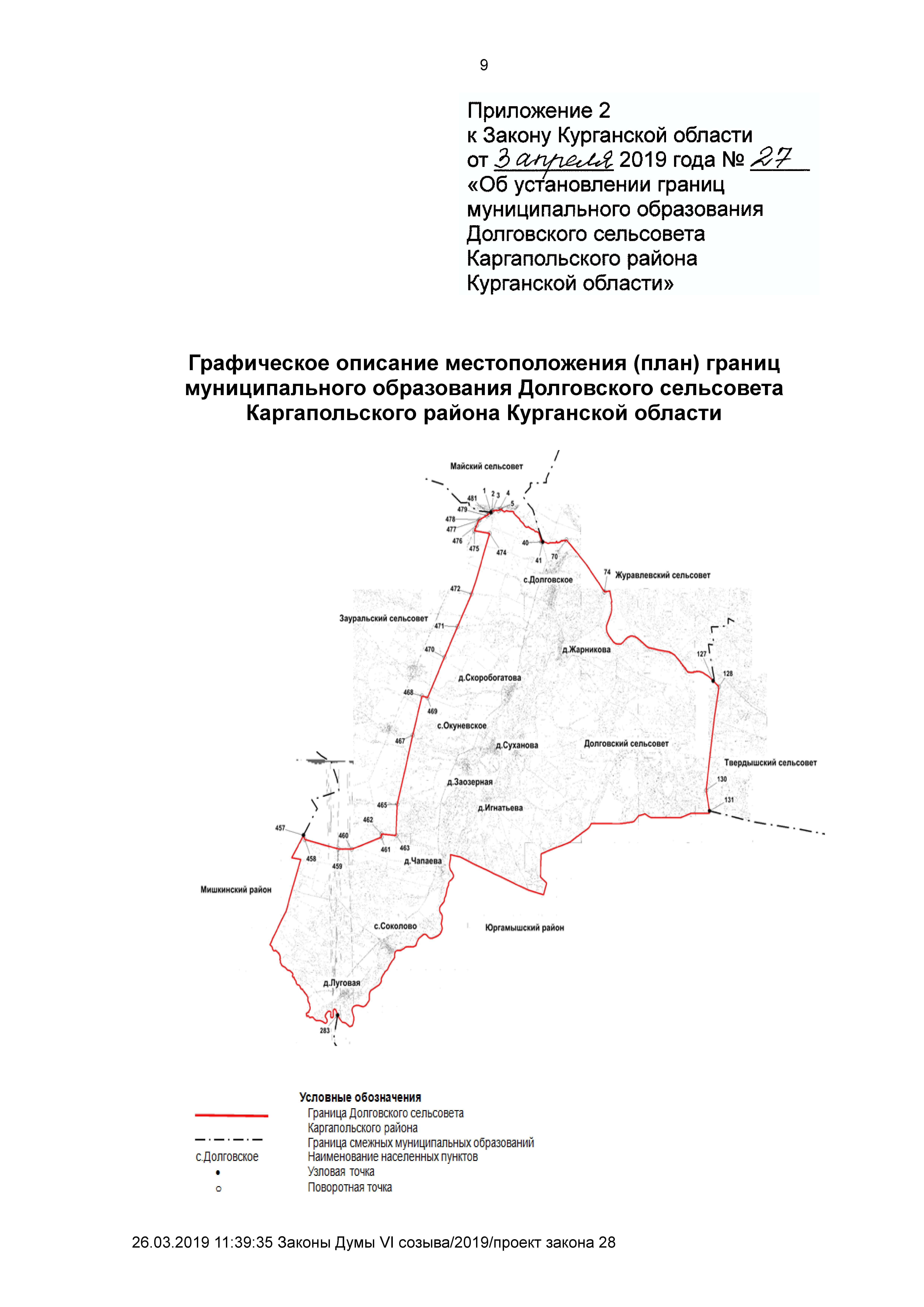 "Об установлении границ муниципального образования Долговского сельсовета Каргапольского района Курганской области"