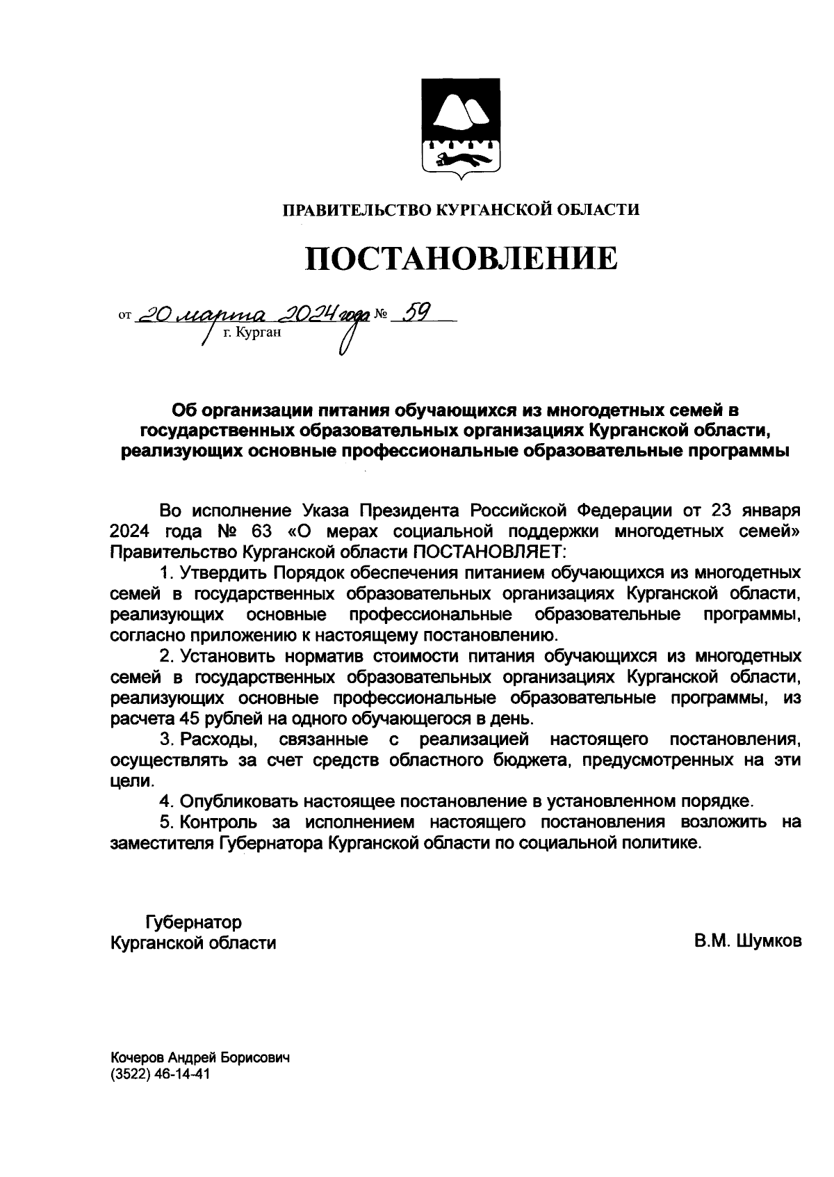 Постановление Правительства Курганской области от 20.03.2024 № 59