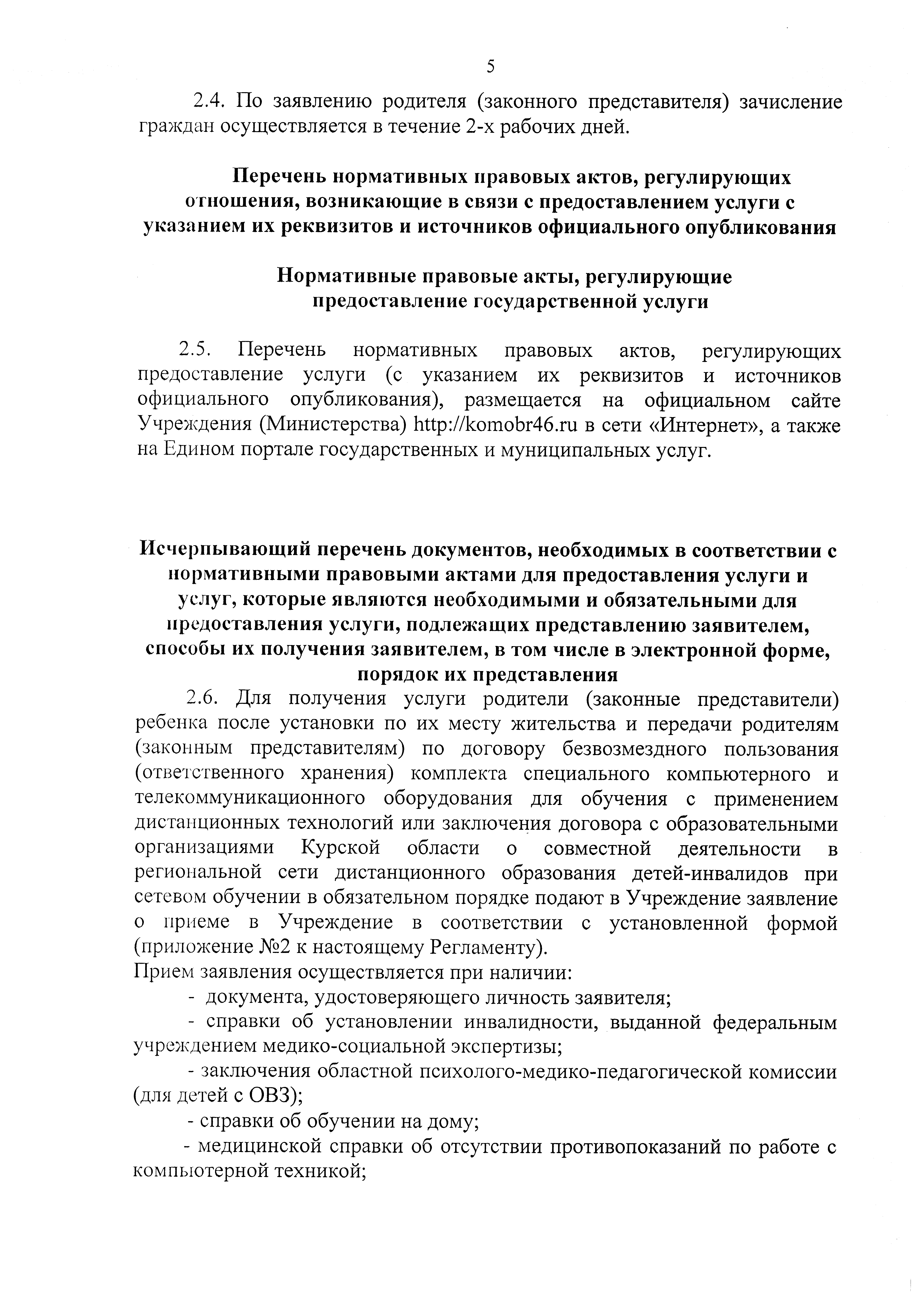"Об утверждении регламента предоставления услуги "Зачисление в образовательное учреждение" областным бюджетным общеобразовательным учреждением Центром дистанционного образования "Новые технологии", подведомственным Министерству образования и науки Курской области"