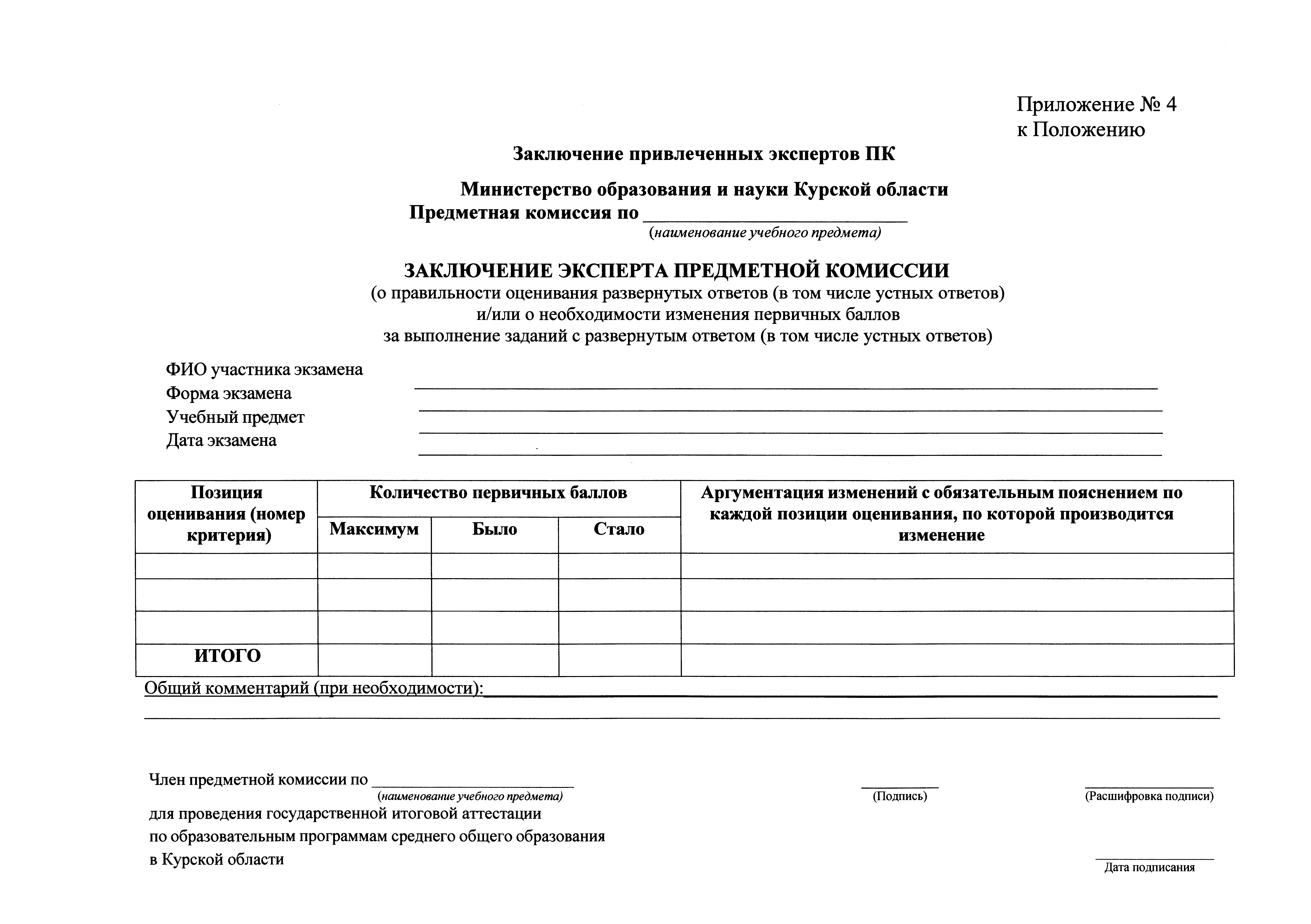 "Об утверждении Положения по организации работы предметной комиссии и Порядка формирования предметной комиссии при проведении государственной итоговой аттестации по образовательным программам среднего общего образования в Курской области в 2025 году"