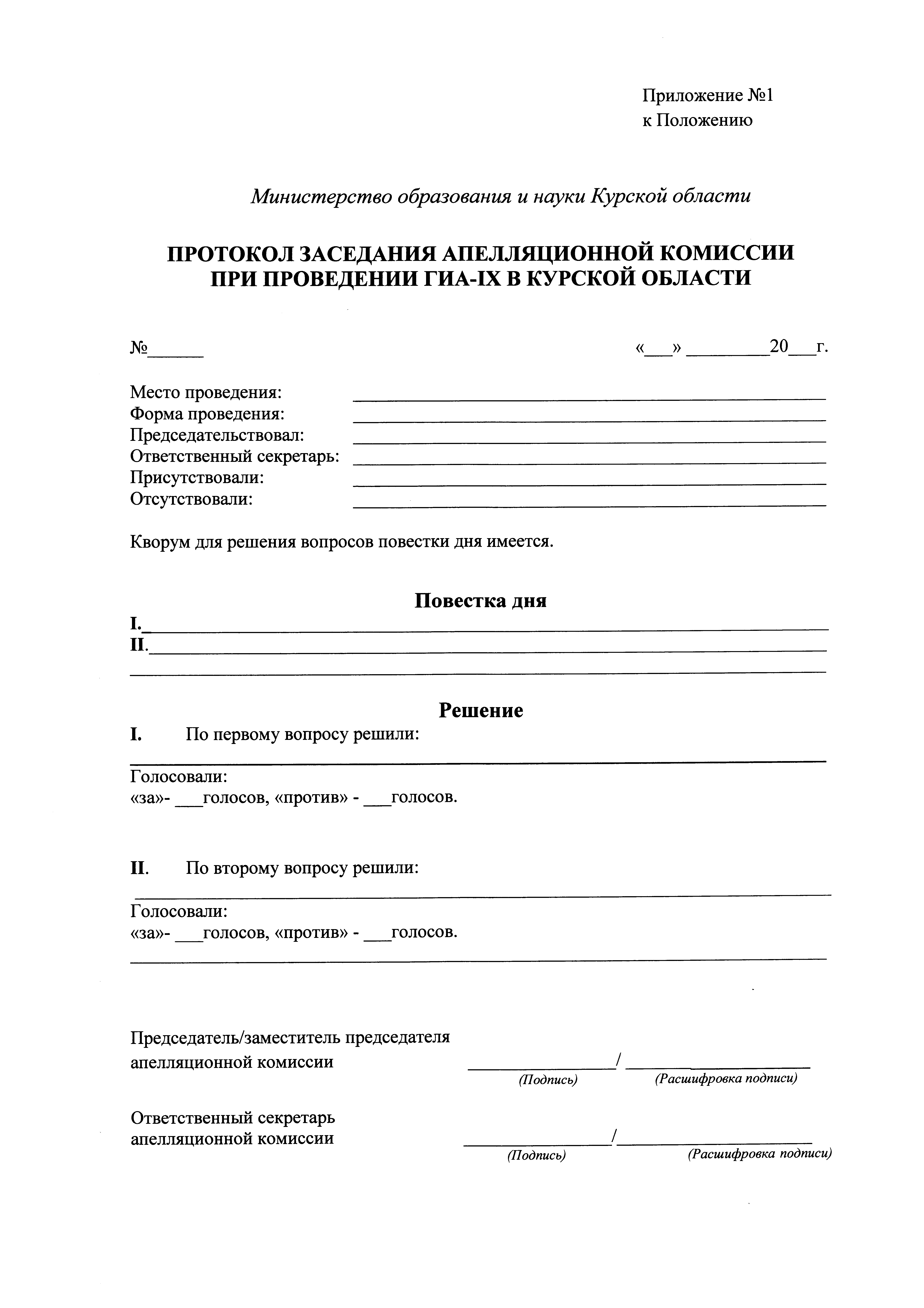 "Об утверждении Положения по организации работы апелляционной комиссии Курской области при проведении государственной итоговой аттестации по образовательным программам основного общего образования в Курской области"