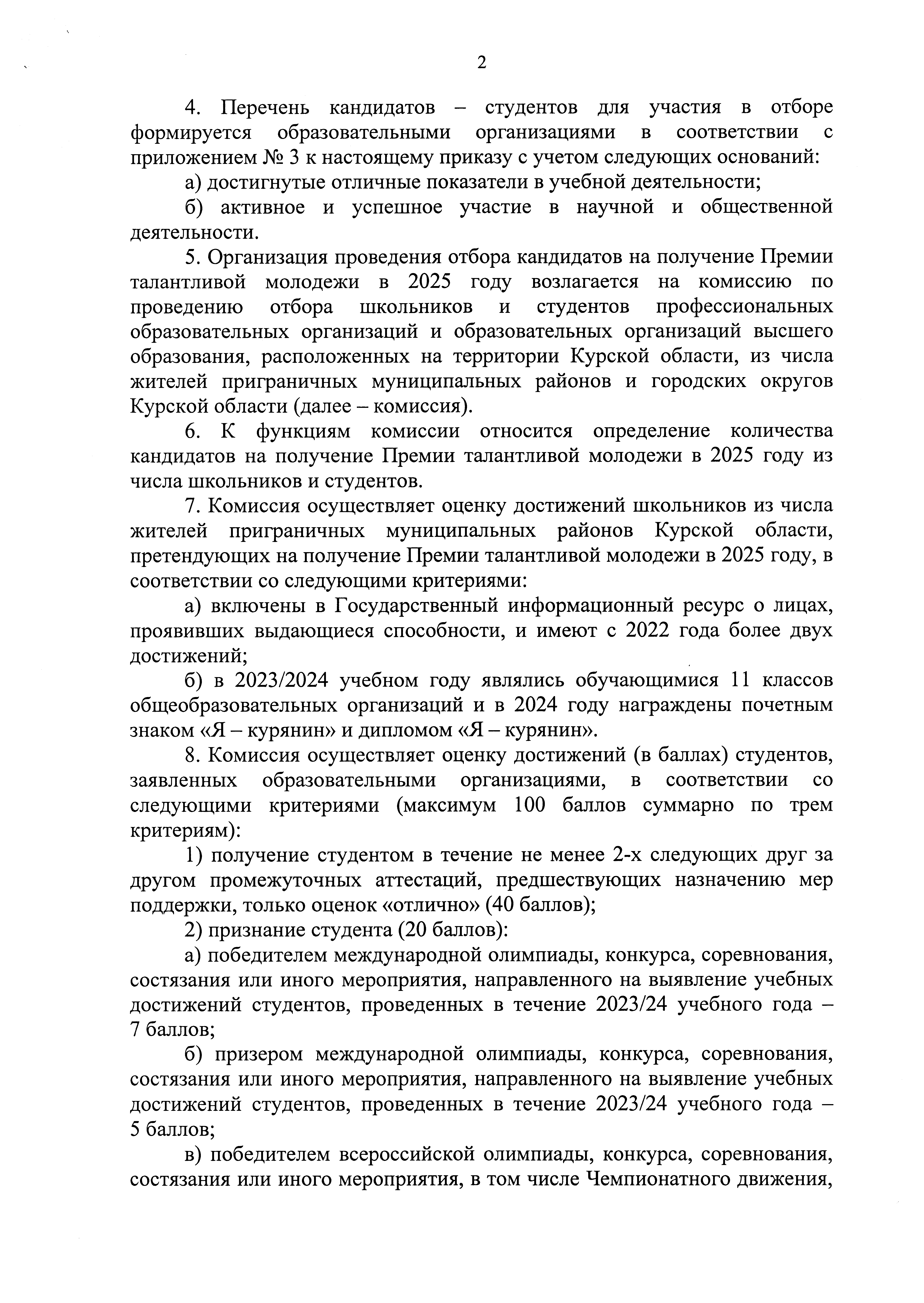 "О формировании списка получателей Премии талантливой молодежи в 2025 году из числа жителей приграничных муниципальных районов и городских округов Курской области"