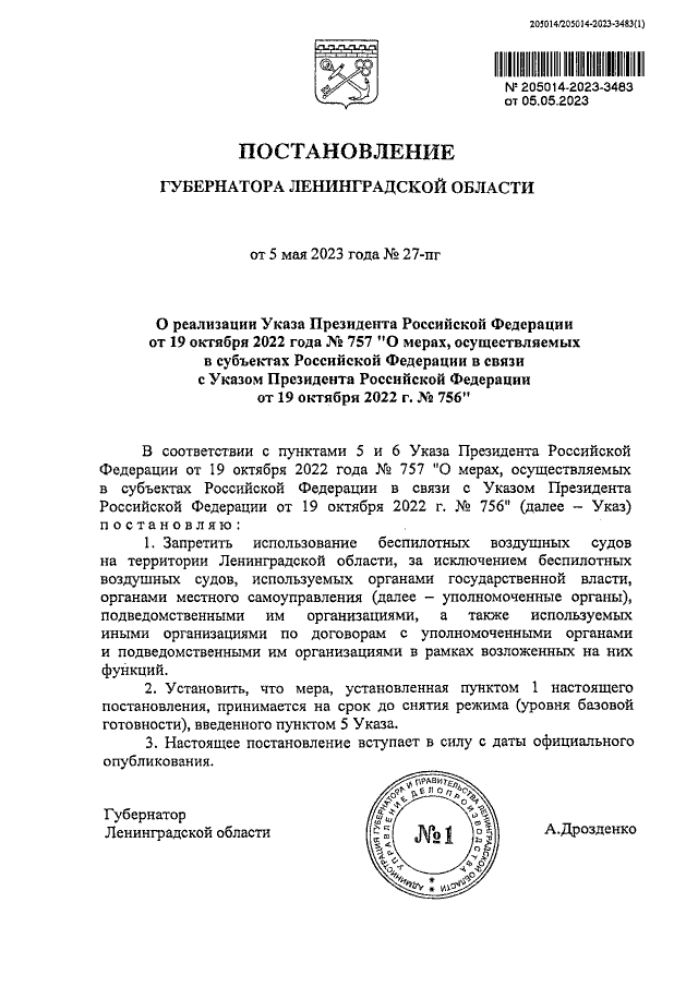 Постановление Губернатора Ленинградской области от 05.05.2023 № 27-пг
