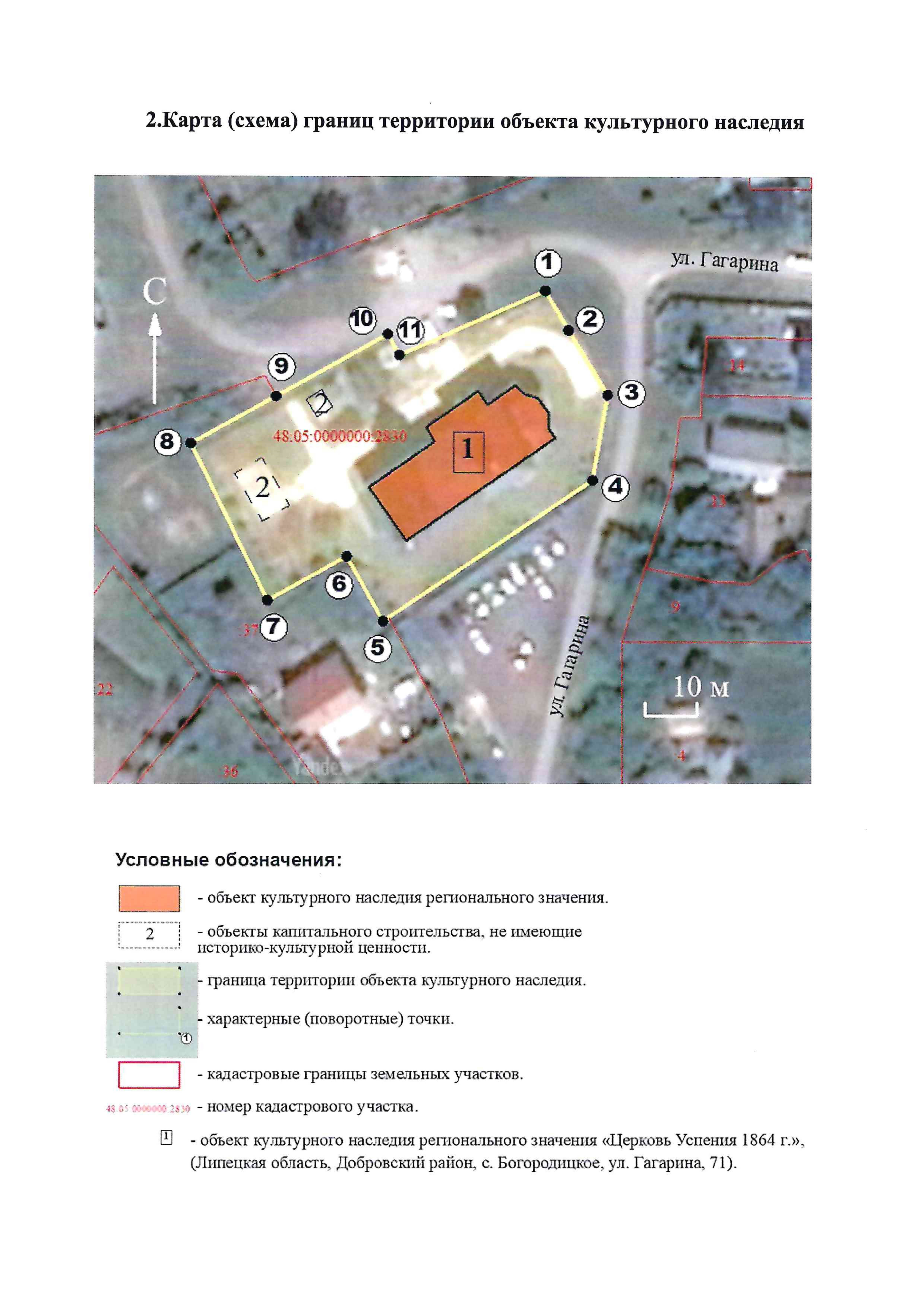 "Об утверждении границ и режима использования территории объекта культурного наследия регионального значения "Церковь Успения 1864 г.", 1864 г., расположенного по адресу: Липецкая область, Добровский район, с. Богородицкое, ул. Гагарина, 71"