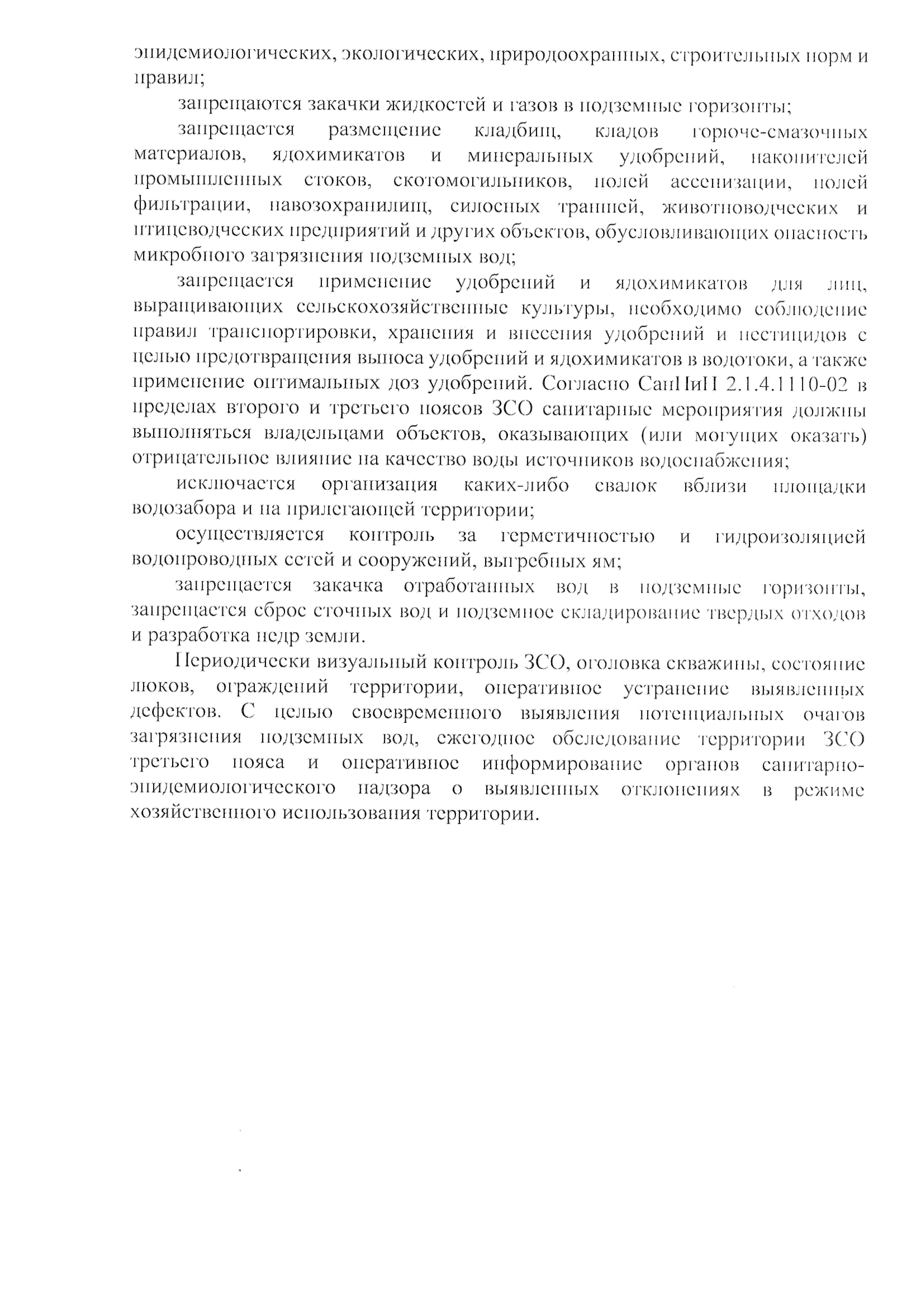 "Об установлении зон санитарной охраны источников питьевого и хозяйственно-бытового водоснабжения"