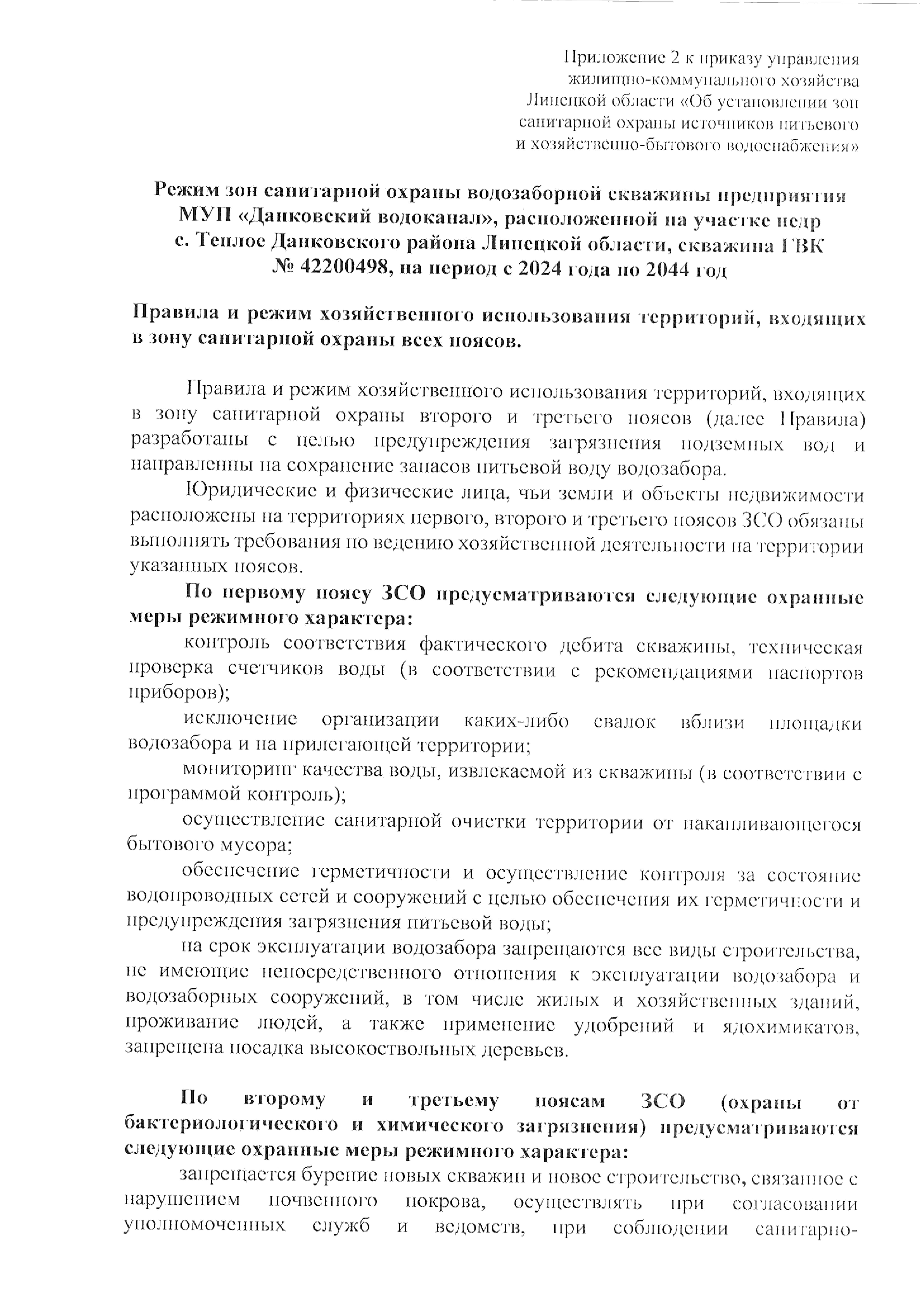 "Об установлении зон санитарной охраны источников питьевого и хозяйственно-бытового водоснабжения"