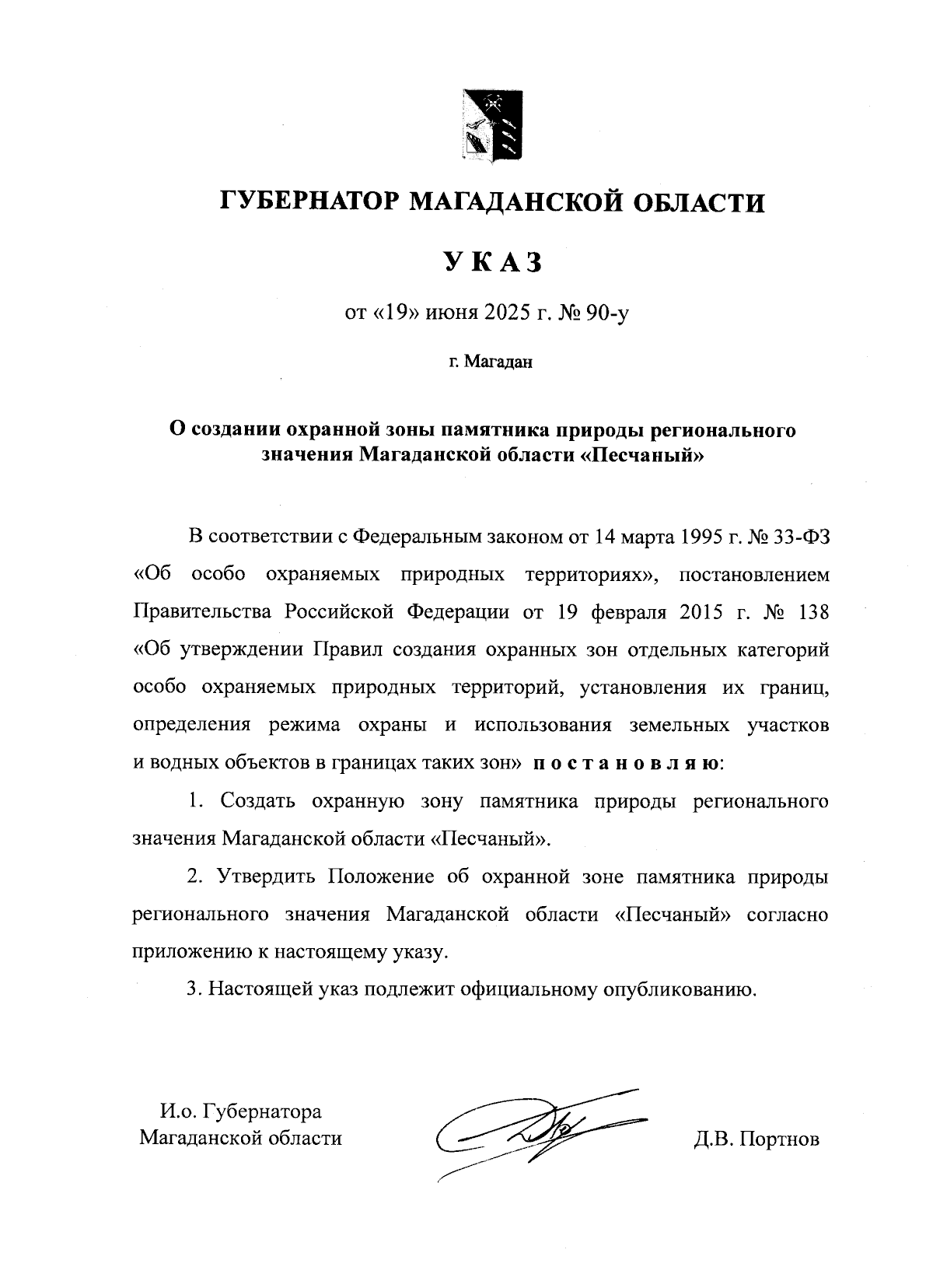 Указ Губернатора Магаданской области от 19.06.2025 № 90-у