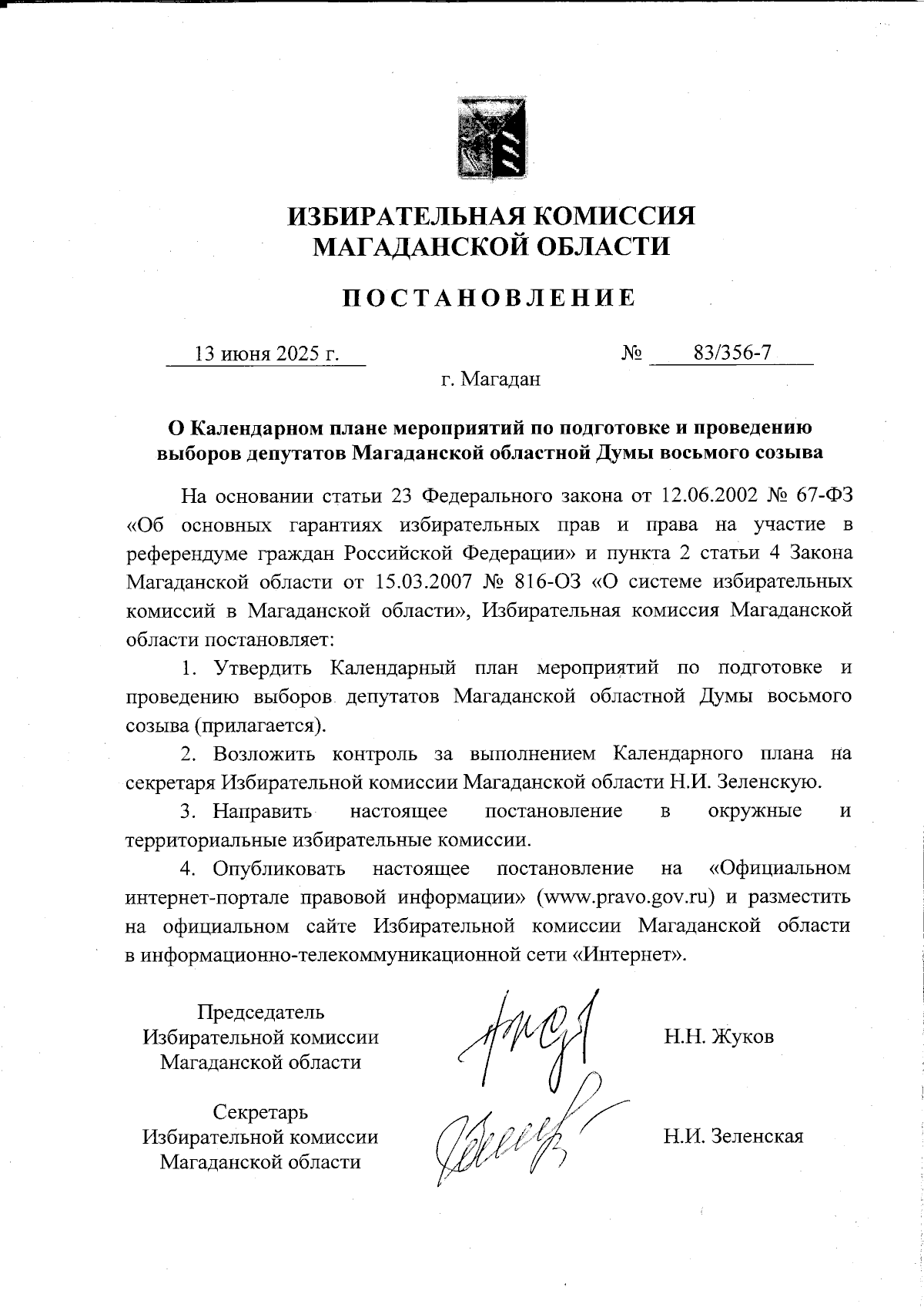 Постановление Избирательной комиссии Магаданской области от 13.06.2025 № 83/356-7