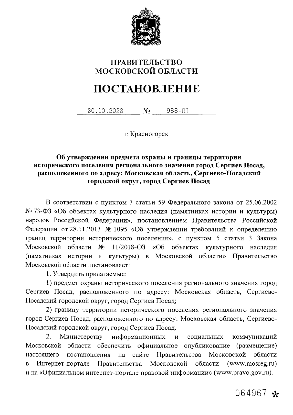 Постановление Правительства Московской области от 30.10.2023 № 988-ПП