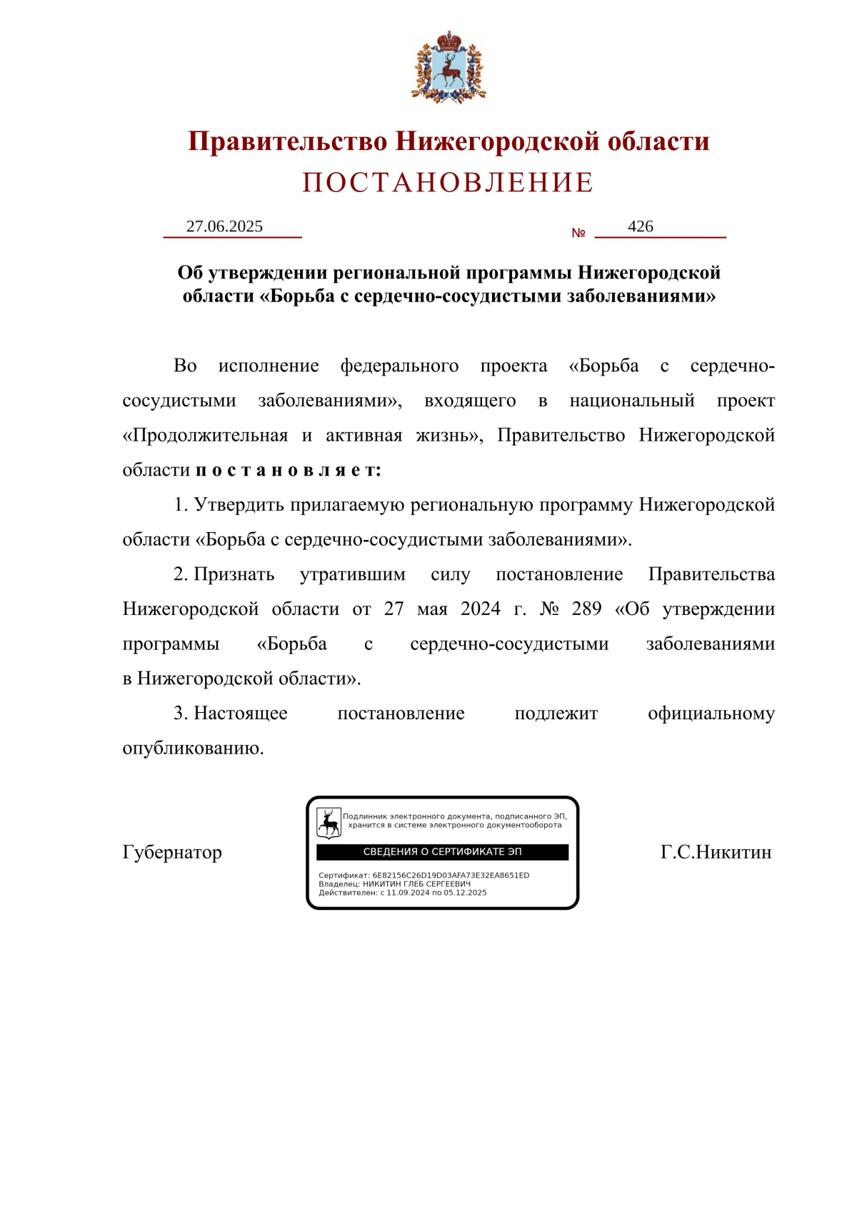 Постановление Правительства Нижегородской области от 27.06.2025 № 426