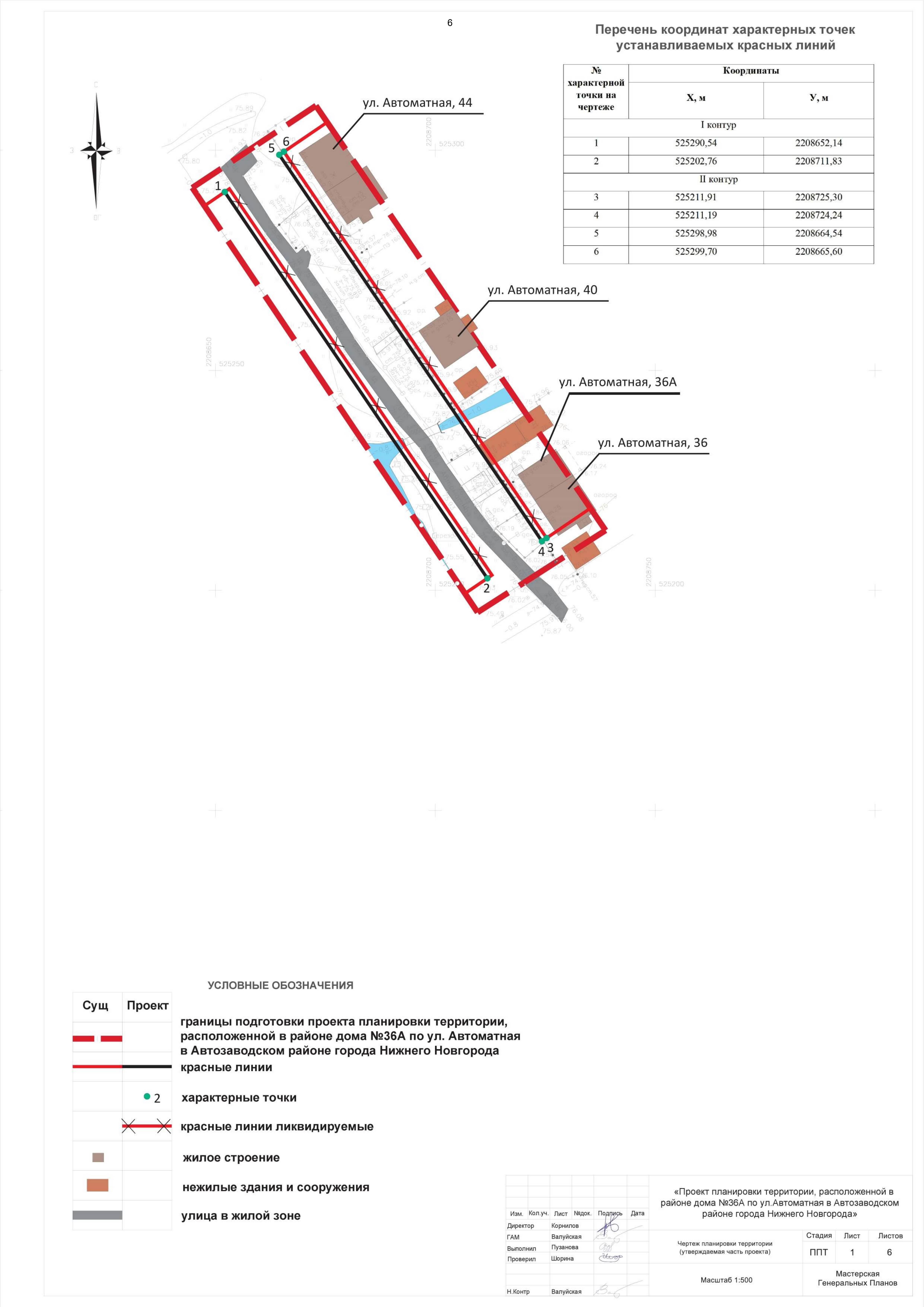 "Об утверждении проекта планировки территории, расположенной в районе дома № 36А по ул. Автоматная в Автозаводском районе города Нижнего Новгорода"