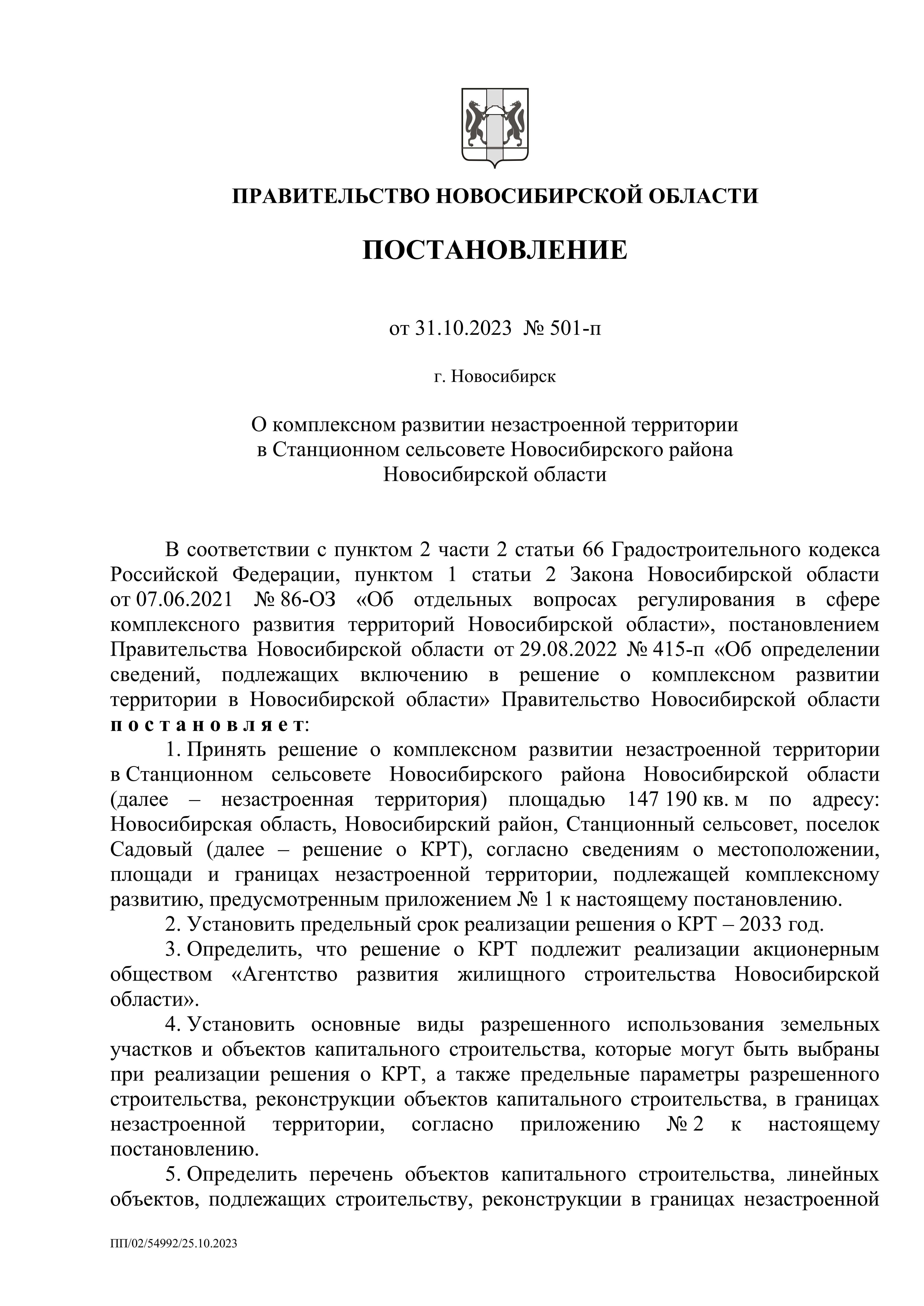 Постановление Правительства Новосибирской области от 31.10.2023 № 501-п