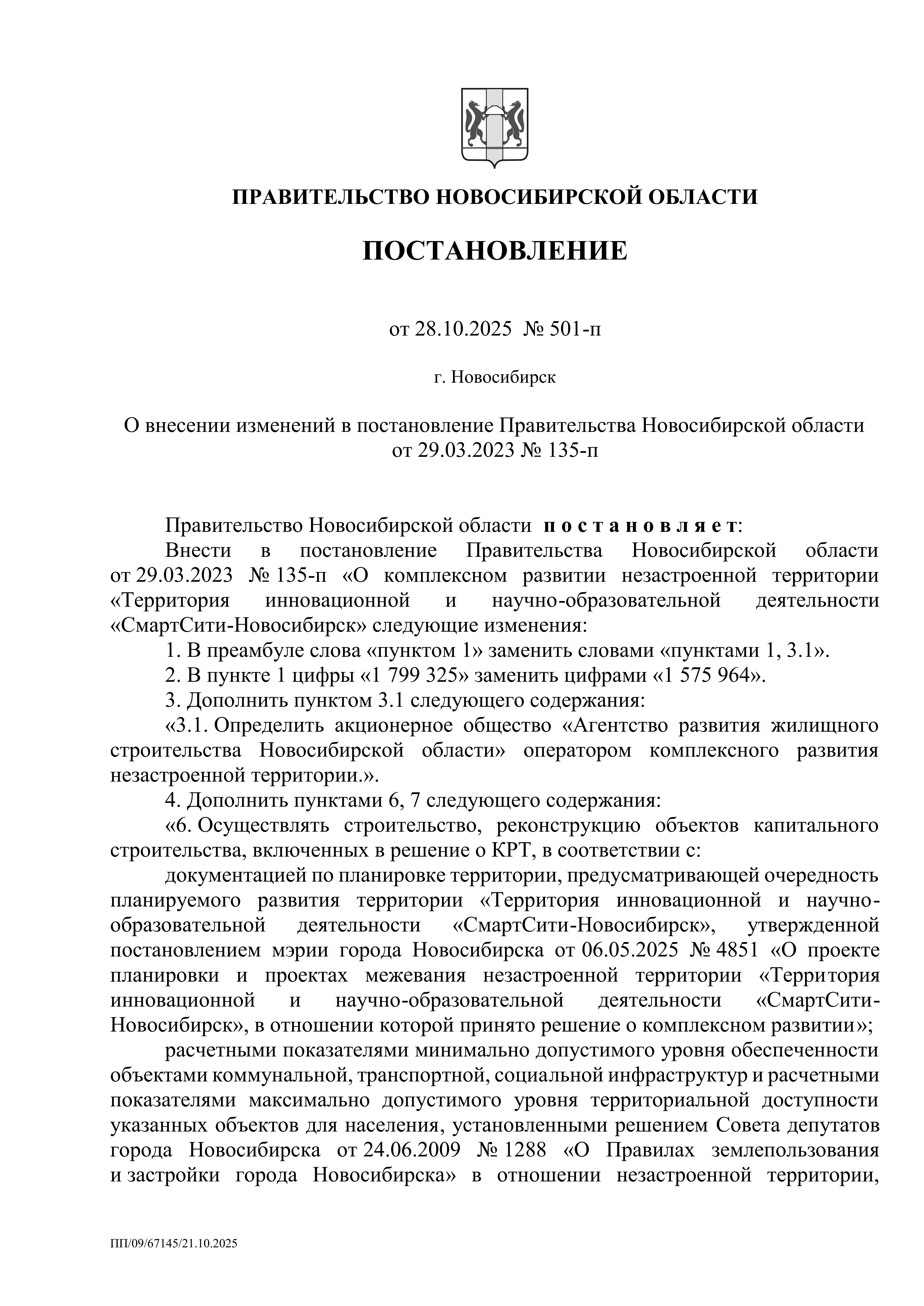 Постановление Правительства Новосибирской области от 28.10.2025 № 501-п