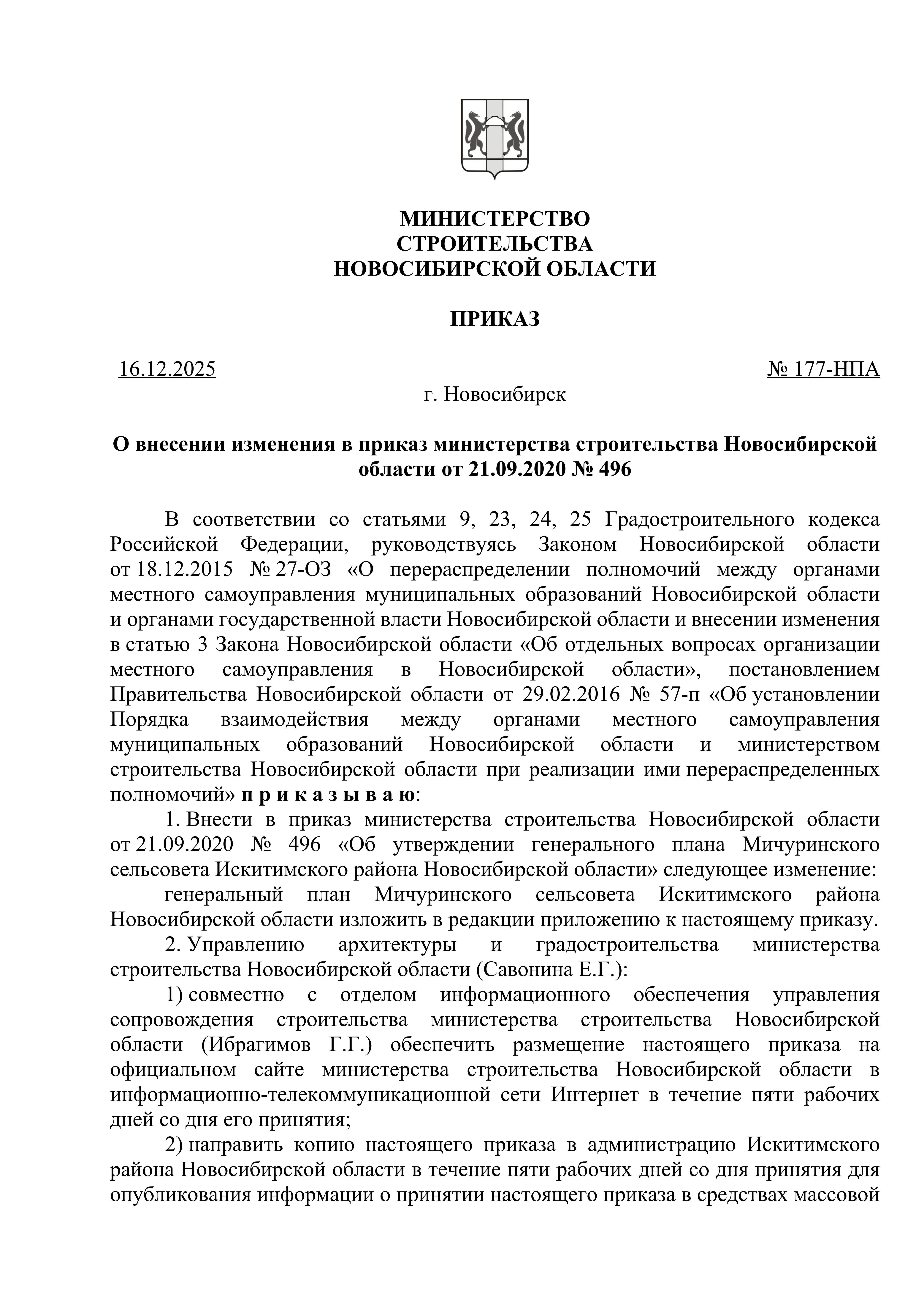 Приказ Министерства строительства Новосибирской области от 16.12.2025 № 177-НПА