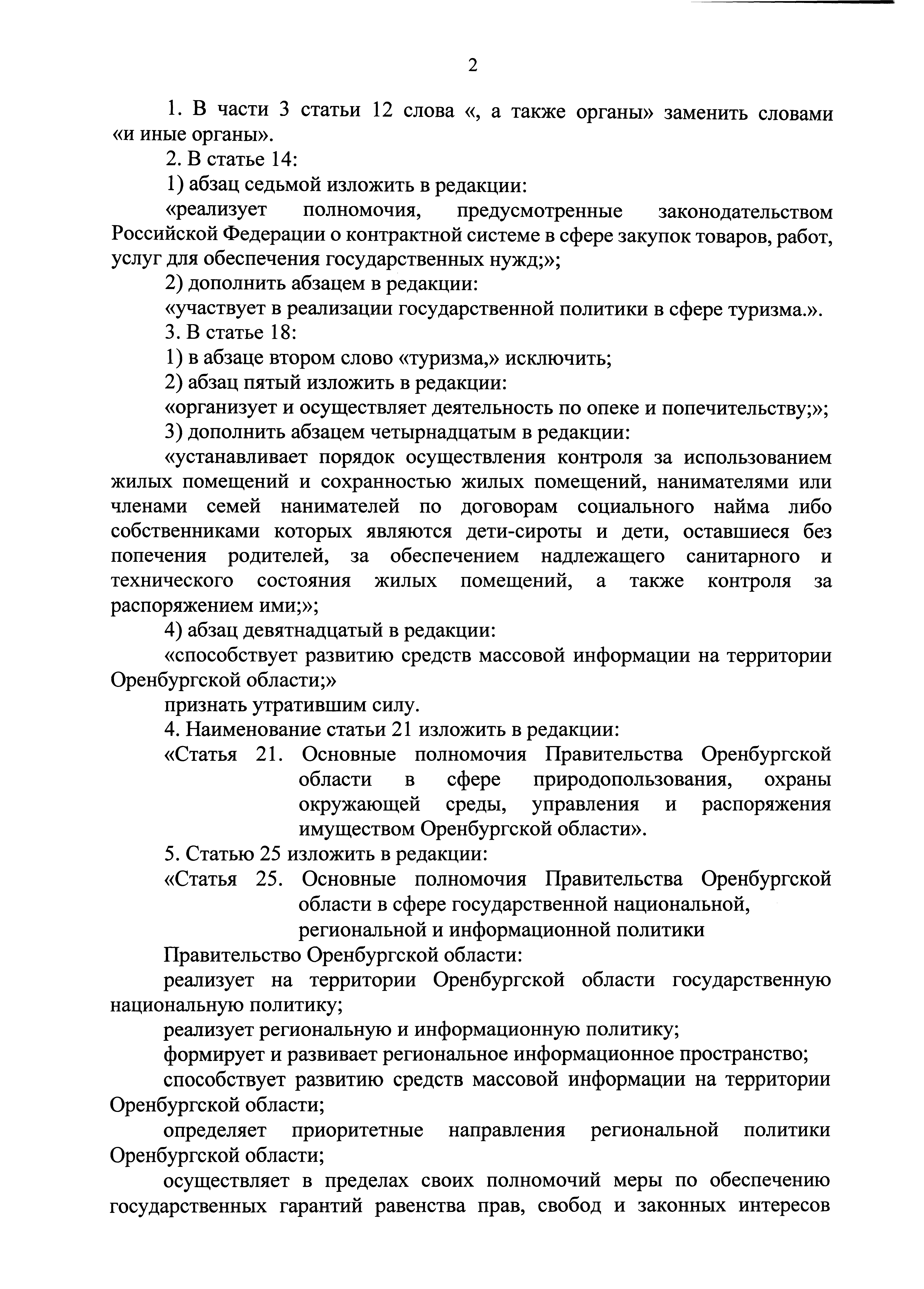 "О внесении изменений в Закон Оренбургской области "О Правительстве Оренбургской области"