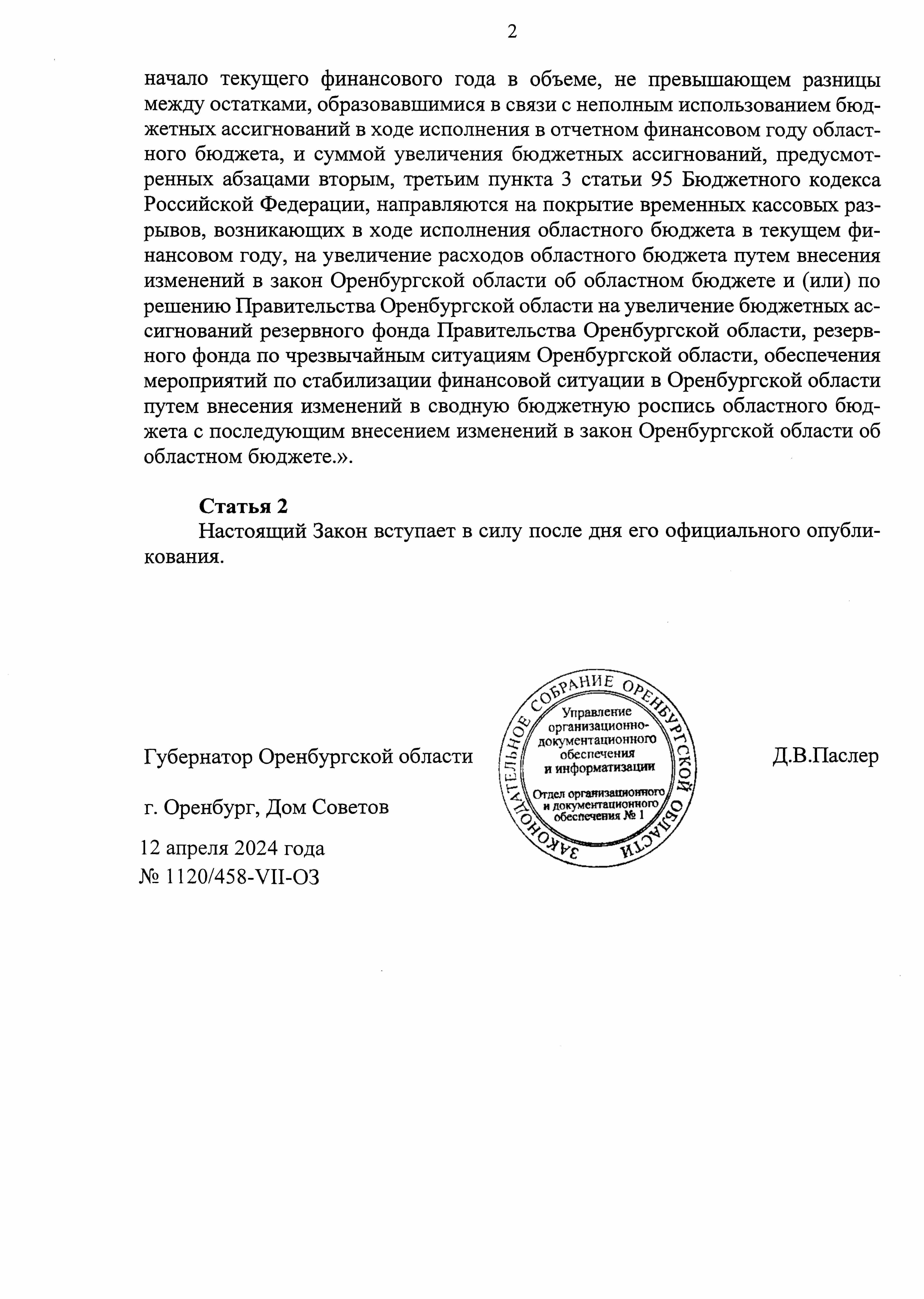 Закон Оренбургской области от 12.04.2024 № 1120/458-VII-ОЗ