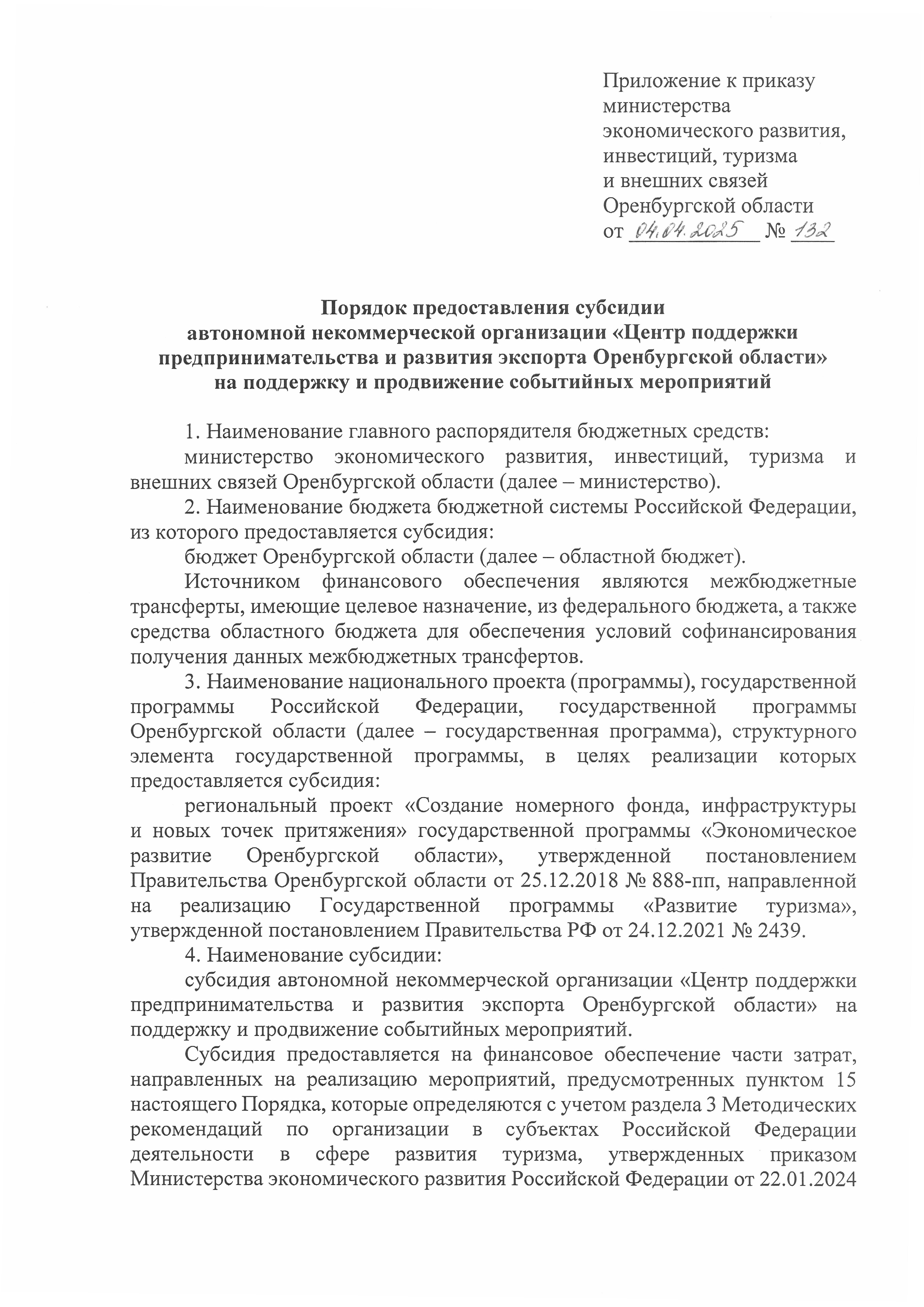 Приказ Министерства экономического развития, инвестиций, туризма и внешних связей Оренбургской области от 04.04.2025 № 132