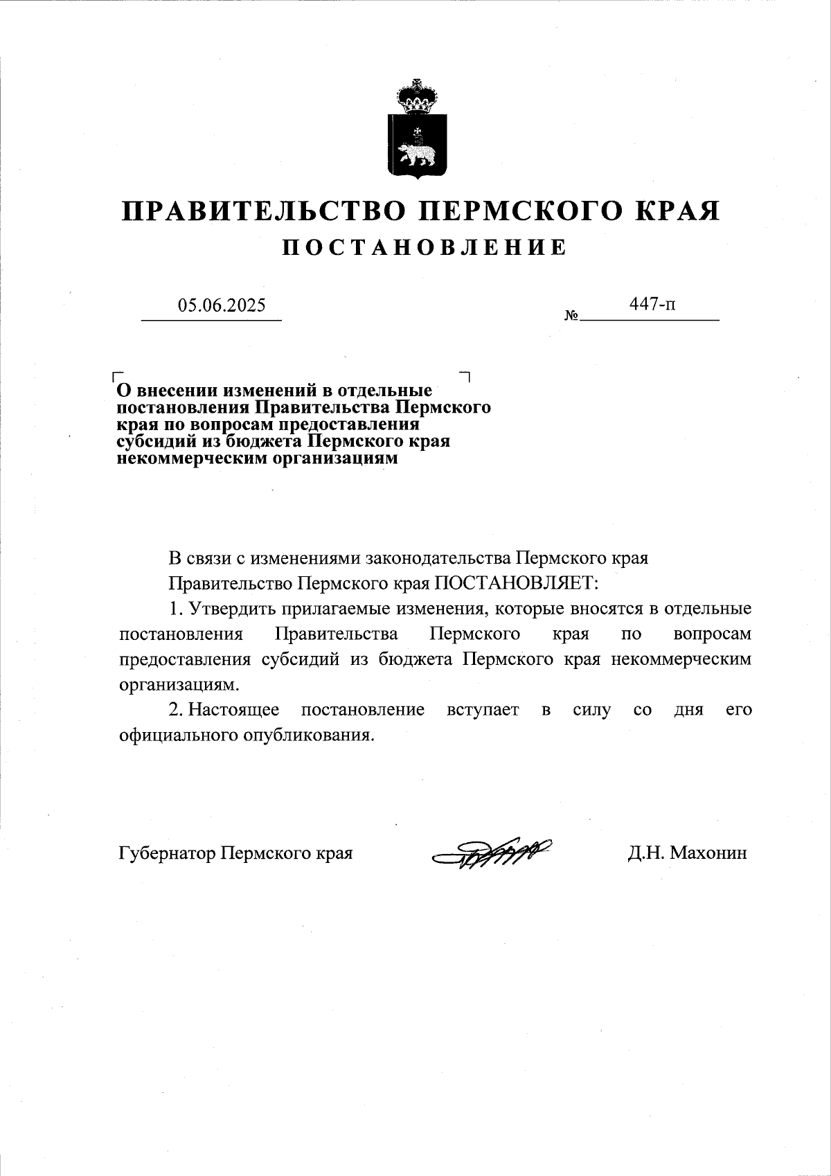 Постановление Правительства Пермского края от 05.06.2025 № 447-п