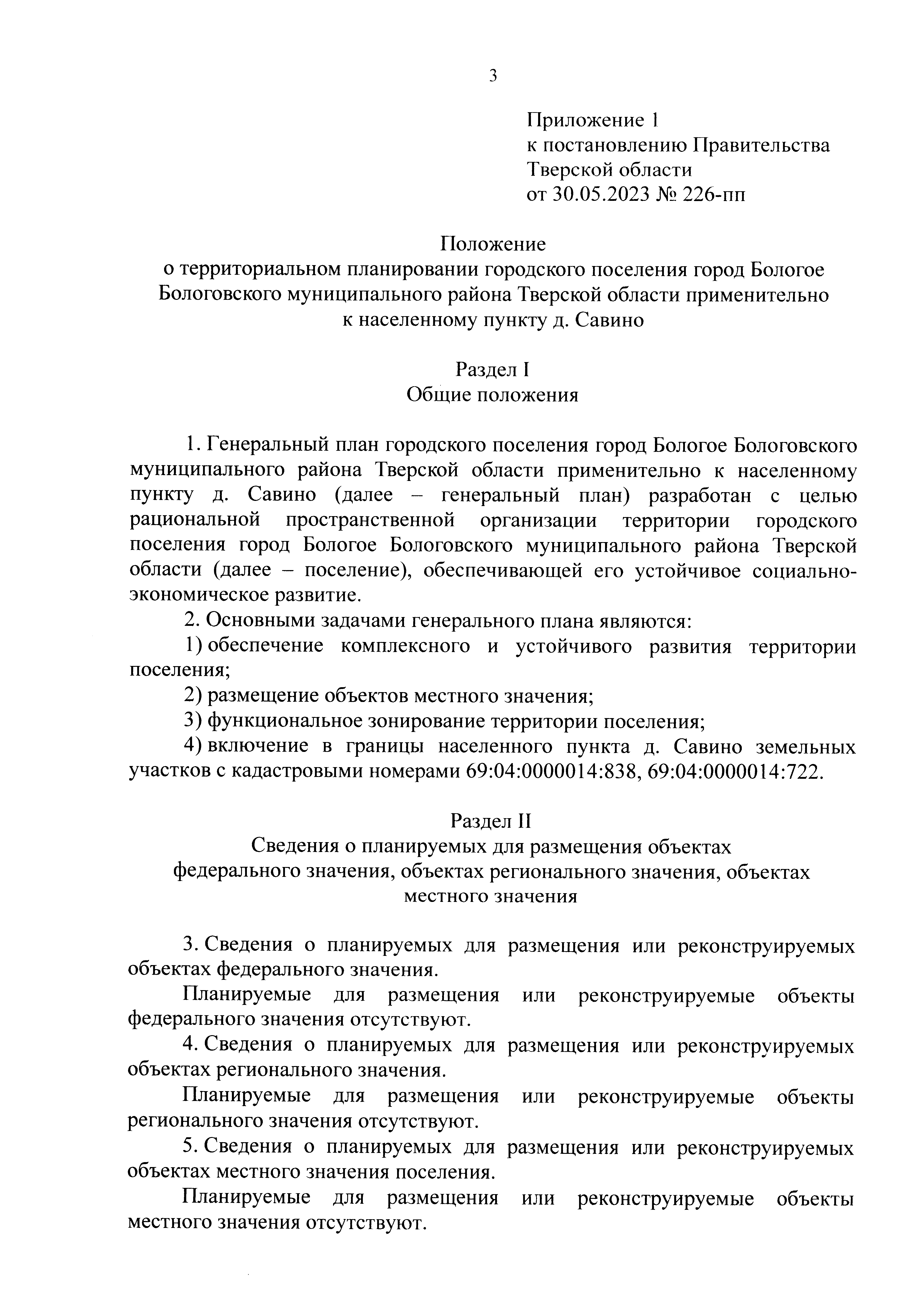 "Об утверждении генерального плана городского поселения город Бологое Бологовского муниципального района Тверской области применительно к населенному пункту д. Савино"