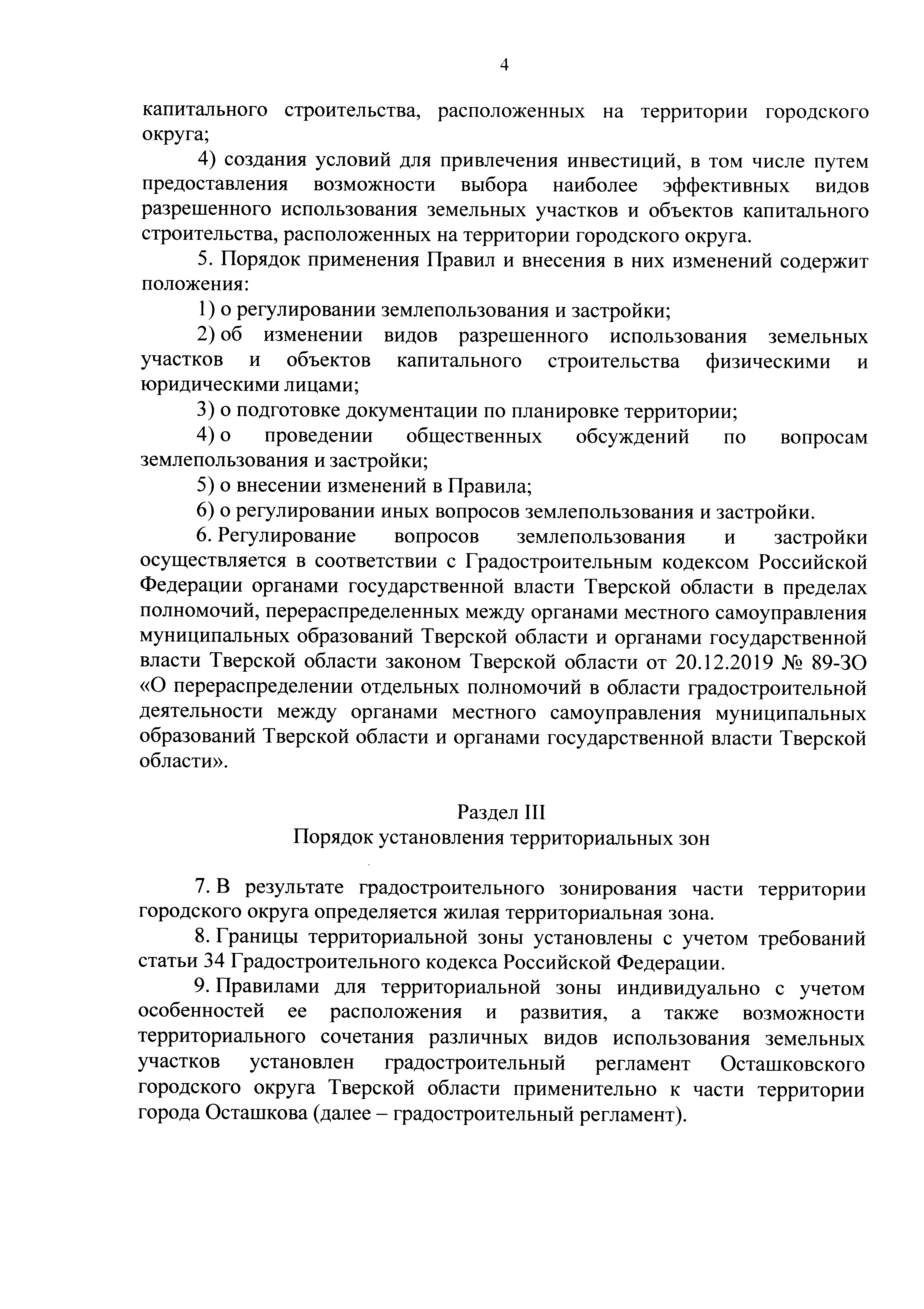 "Об утверждении правил землепользования и застройки Осташковского городского округа Тверской области применительно к части территории города Осташкова"