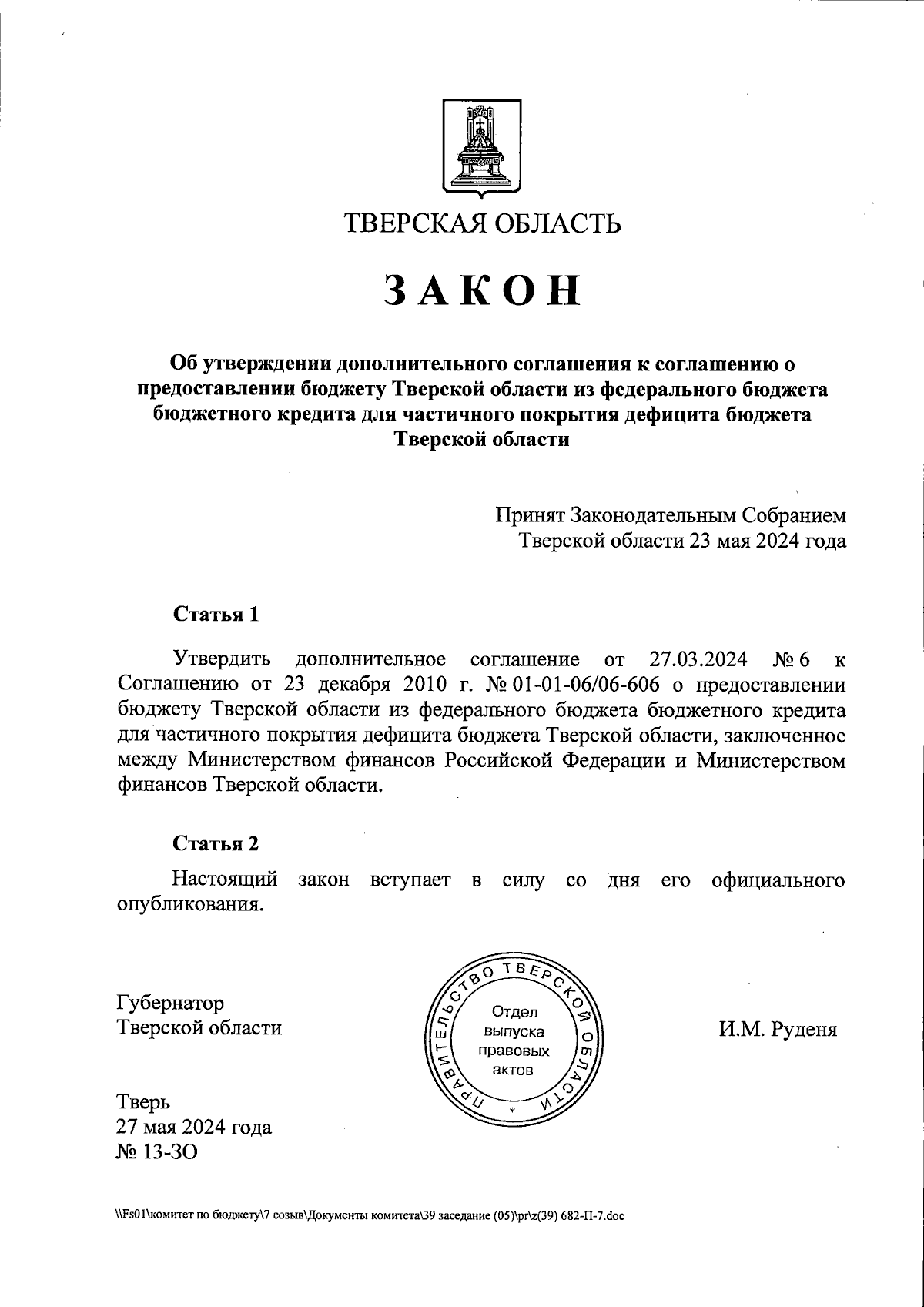 Закон Тверской области от 27.05.2024 № 13-ЗО
