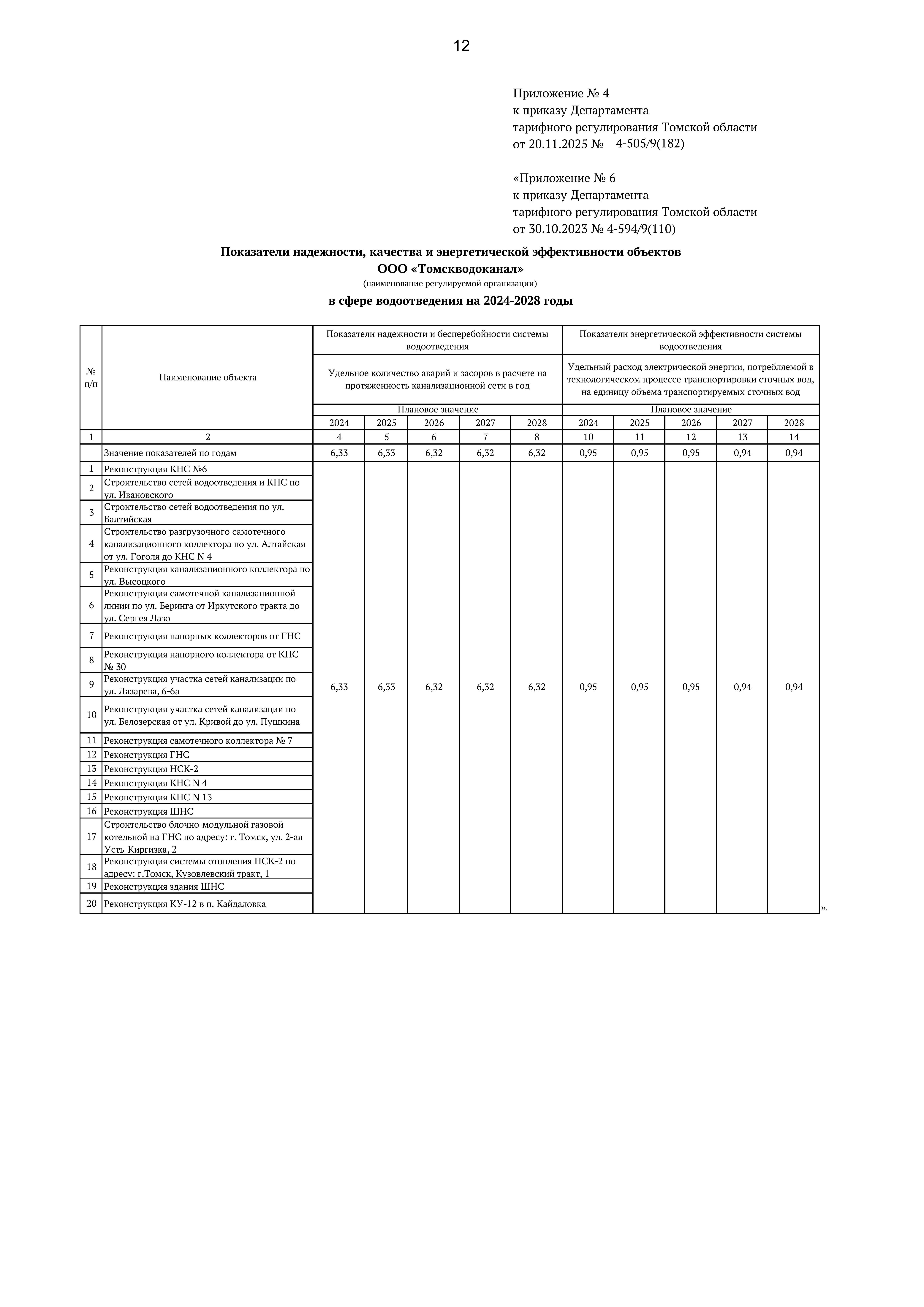 Приказ Департамента тарифного регулирования Томской области от 20.11.2025 № 4-505/9(182)