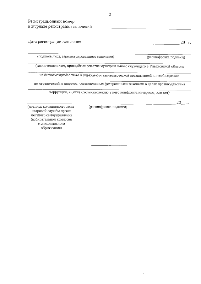 "Об утверждении формы заявления муниципального служащего в Ульяновской области о намерении участвовать на безвозмездной основе в управлении некоммерческой организацией (кроме участия в управлении политической партией, органом профессионального союза, в том числе выборным органом первичной профсоюзной организации, созданной в органе местного самоуправления, аппарате избирательной комиссии муниципального образования, участия в съезде (конференции) или общем собрании иной общественной организации, жилищного, жилищно-строительного, гаражного кооперативов, товарищества собственников недвижимости) и формы журнала регистрации указанных заявлений"