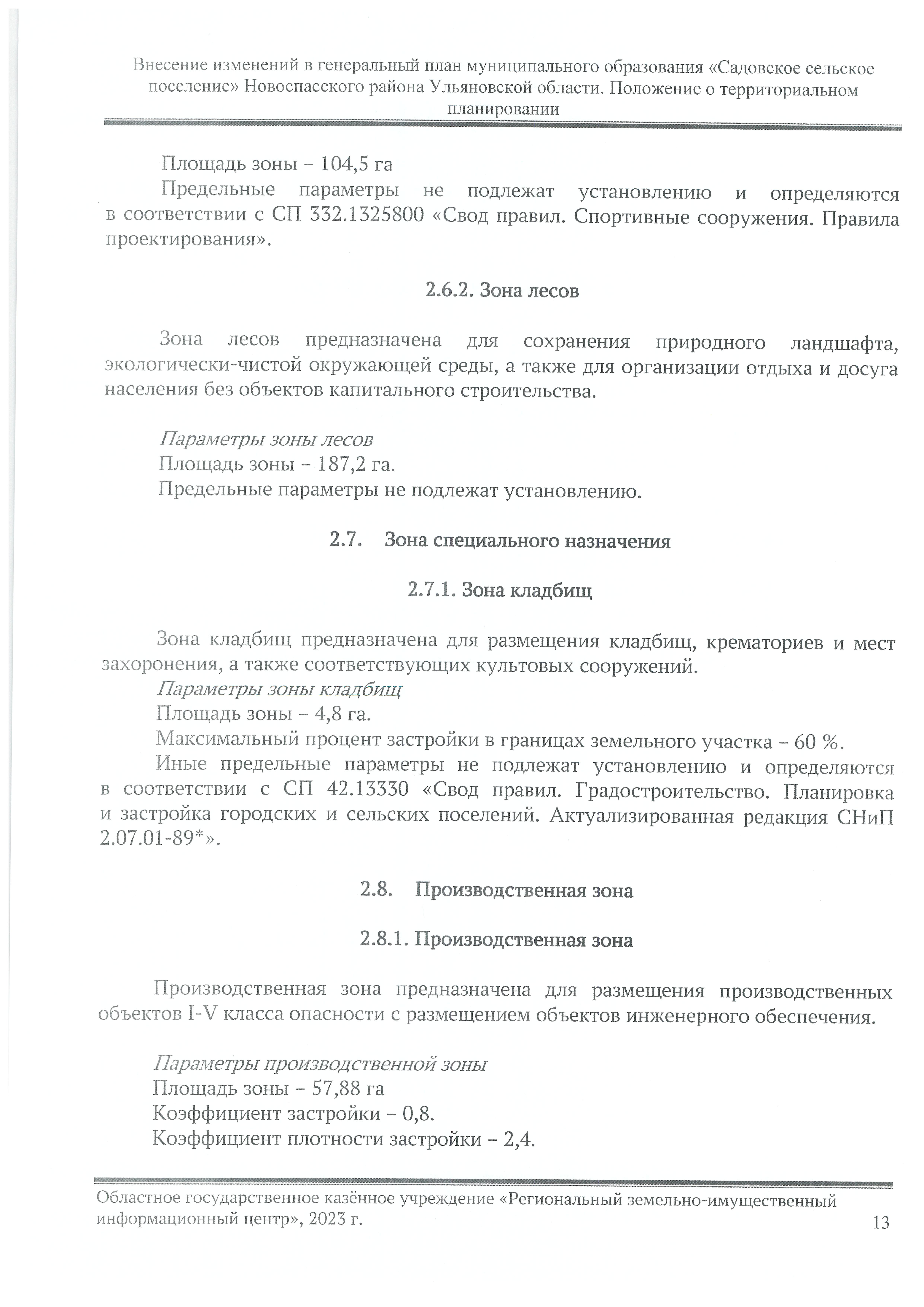 "О внесении изменения в генеральный план муниципального образования "Садовское сельское поселение" Новоспасского района Ульяновской области"
