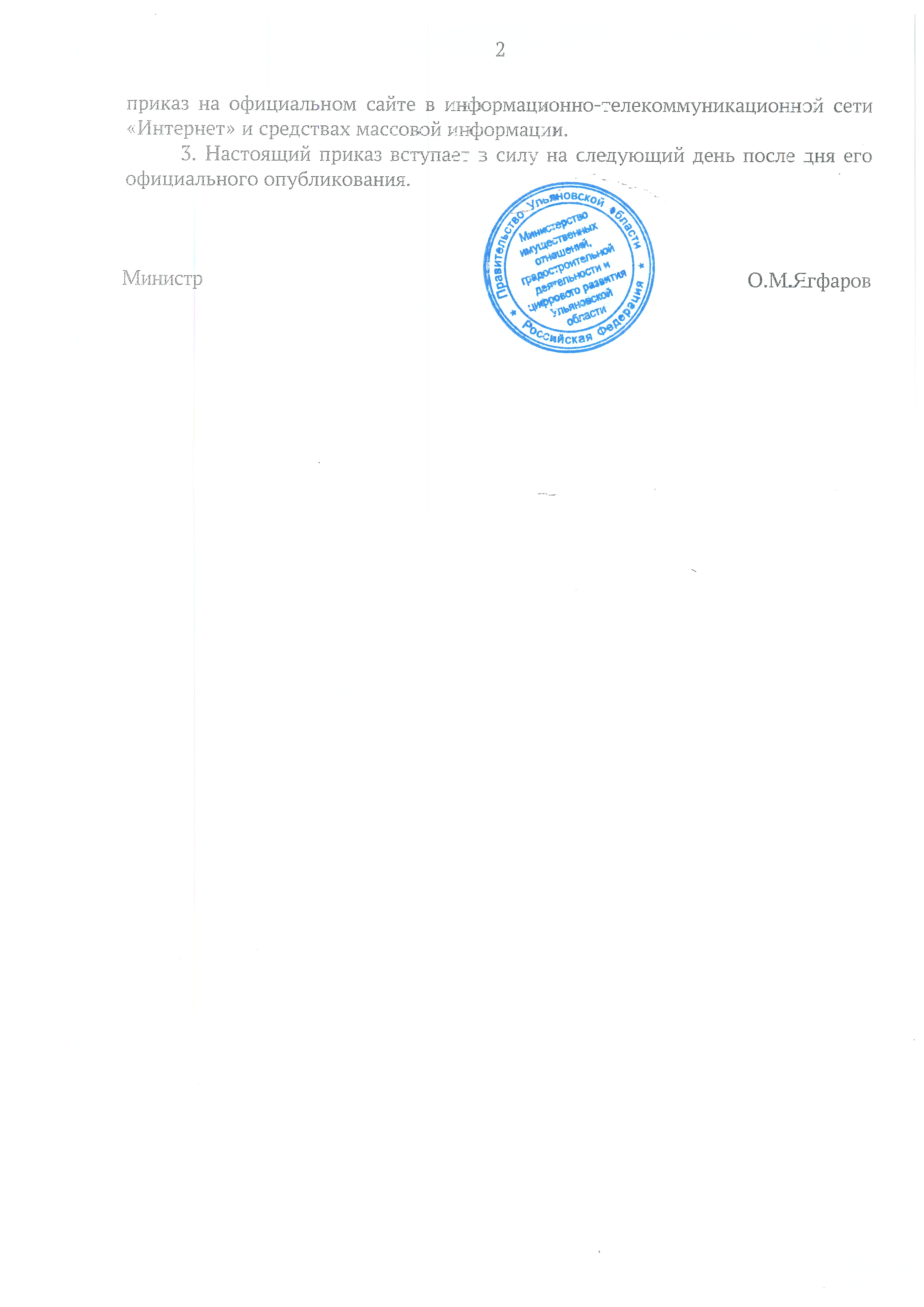 Приказ Министерства имущественных отношений, градостроительной деятельности и цифрового развития Ульяновской области от 03.02.2026 № 30-пр
