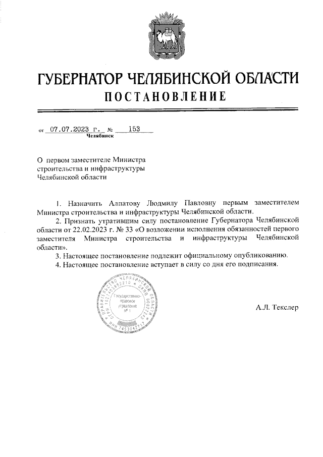 Постановление Губернатора Челябинской области от 07.07.2023 № 153