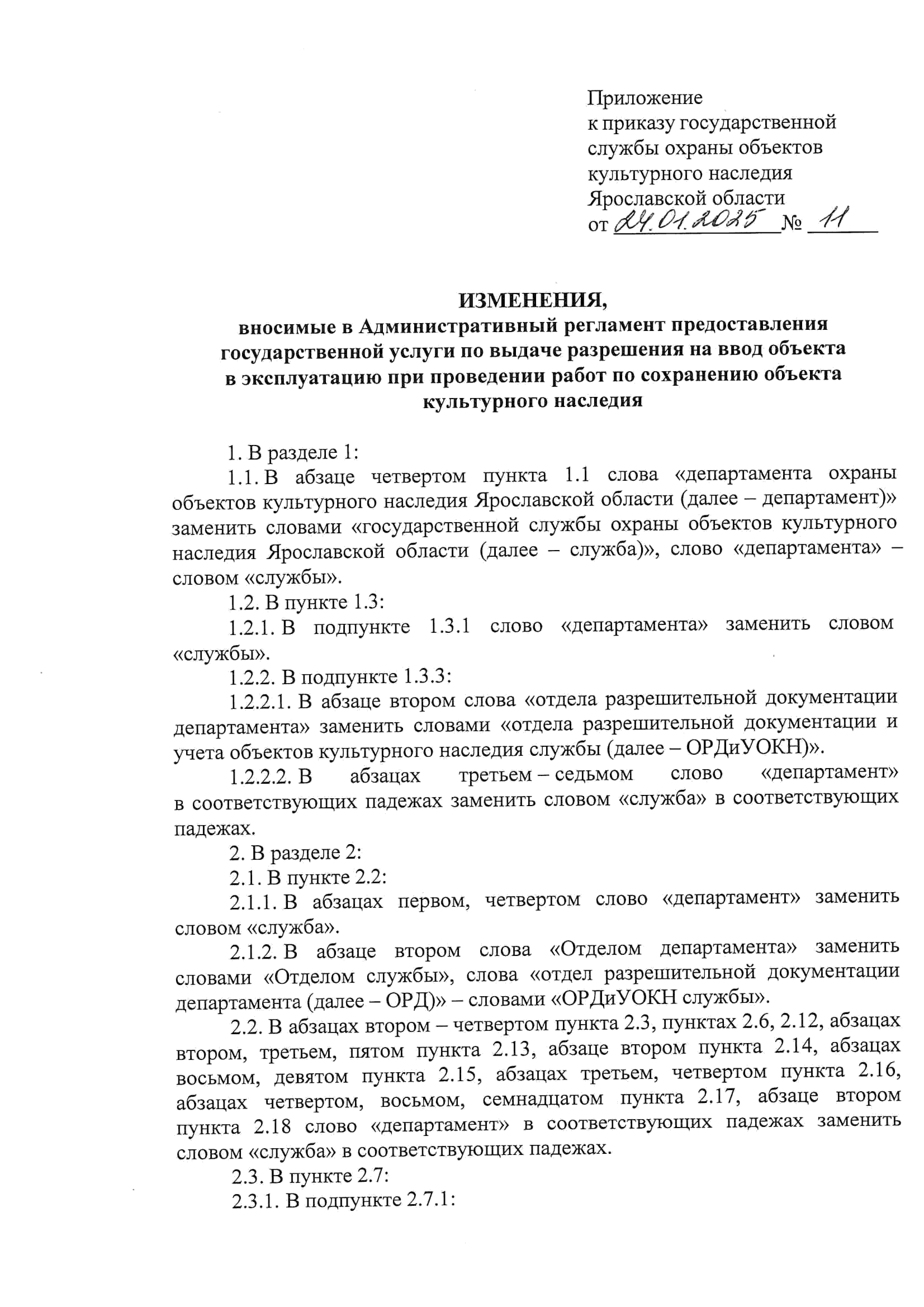 Приказ государственной службы охраны объектов культурного наследия Ярославской области от 24.01.2025 № 11