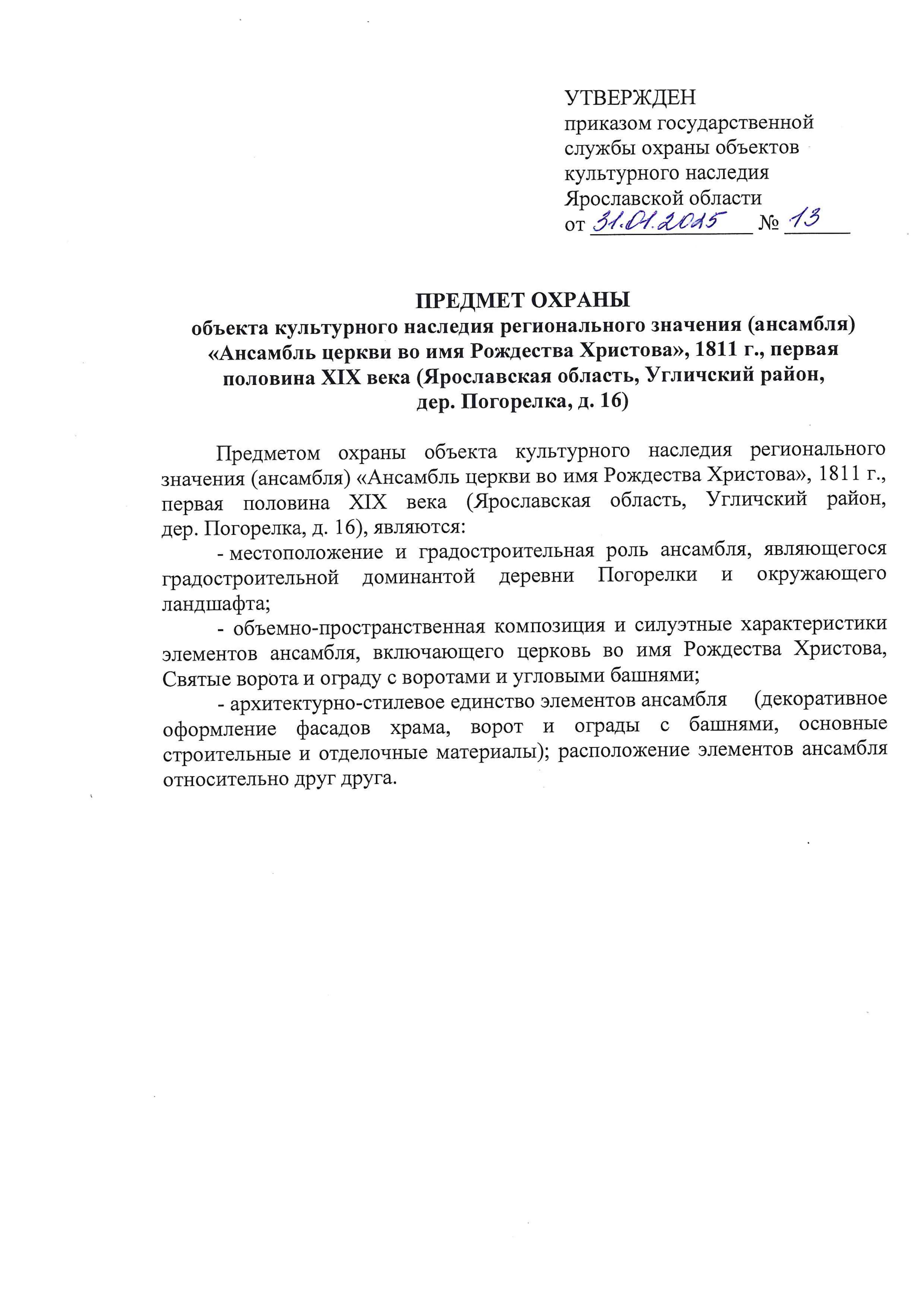 Приказ государственной службы охраны объектов культурного наследия Ярославской области от 31.01.2025 № 13