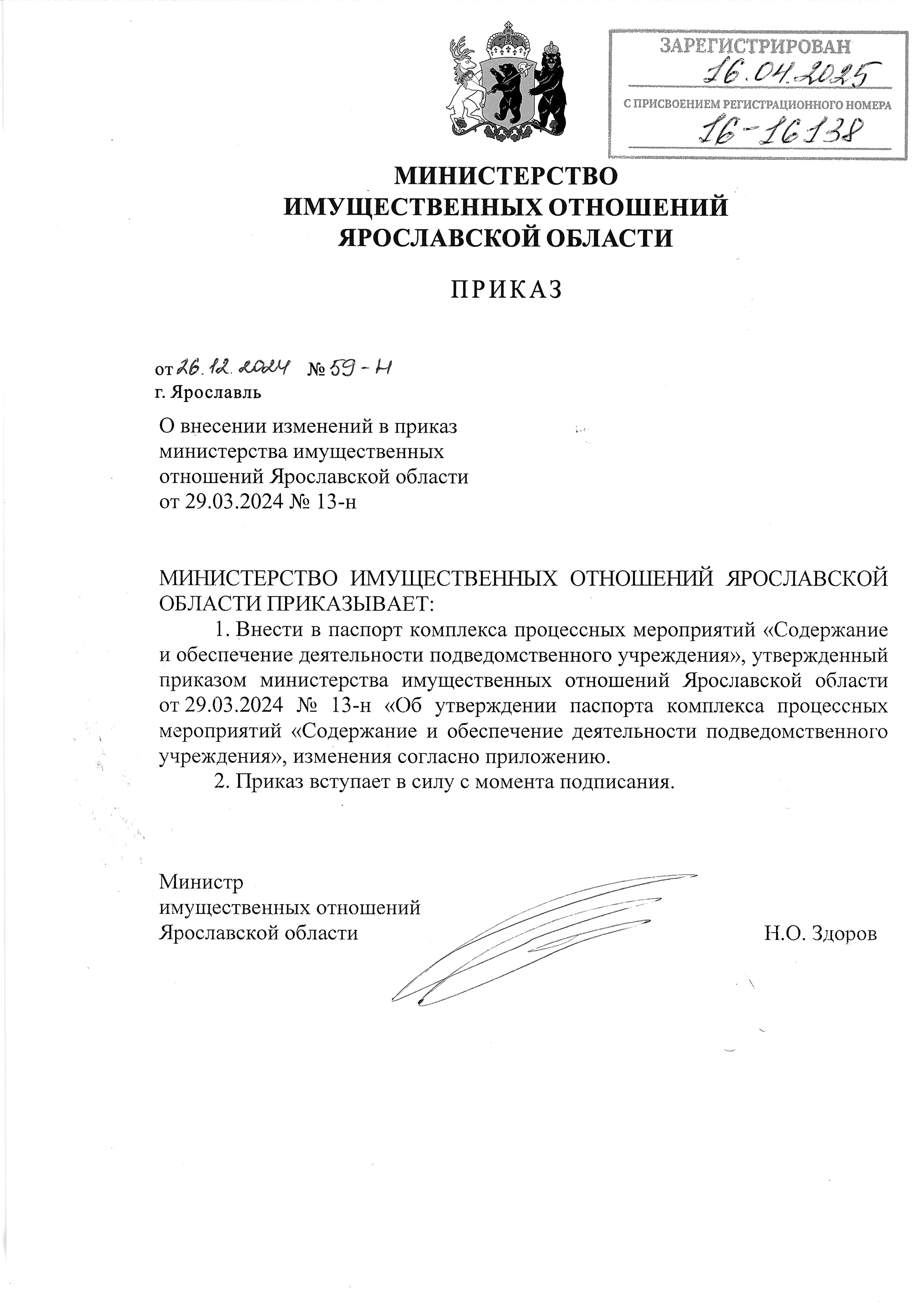 "О внесении изменений в приказ министерства имущественных отношений Ярославской области от 29.03.2024 № 13-н"