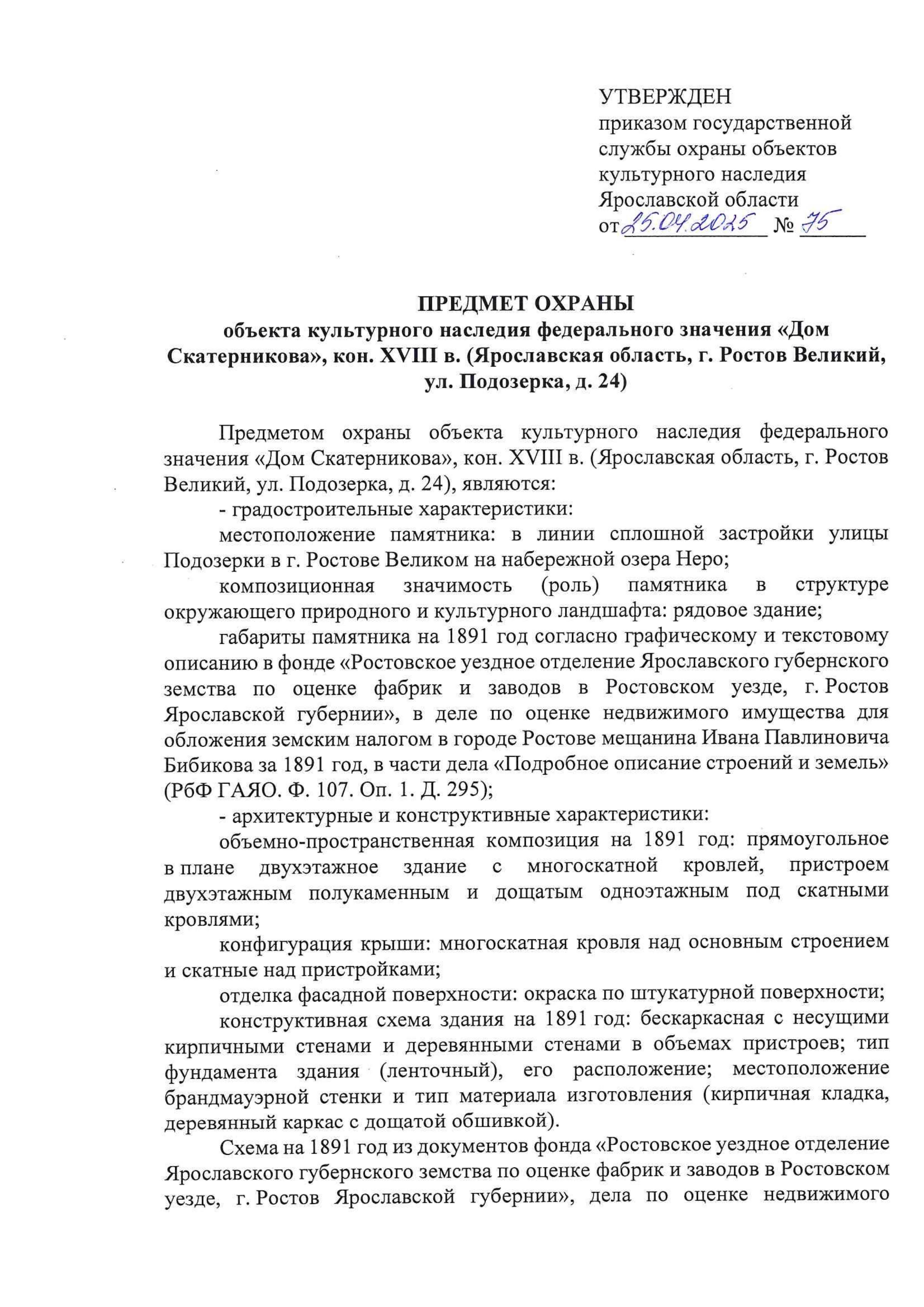 Приказ государственной службы охраны объектов культурного наследия Ярославской области от 25.04.2025 № 75